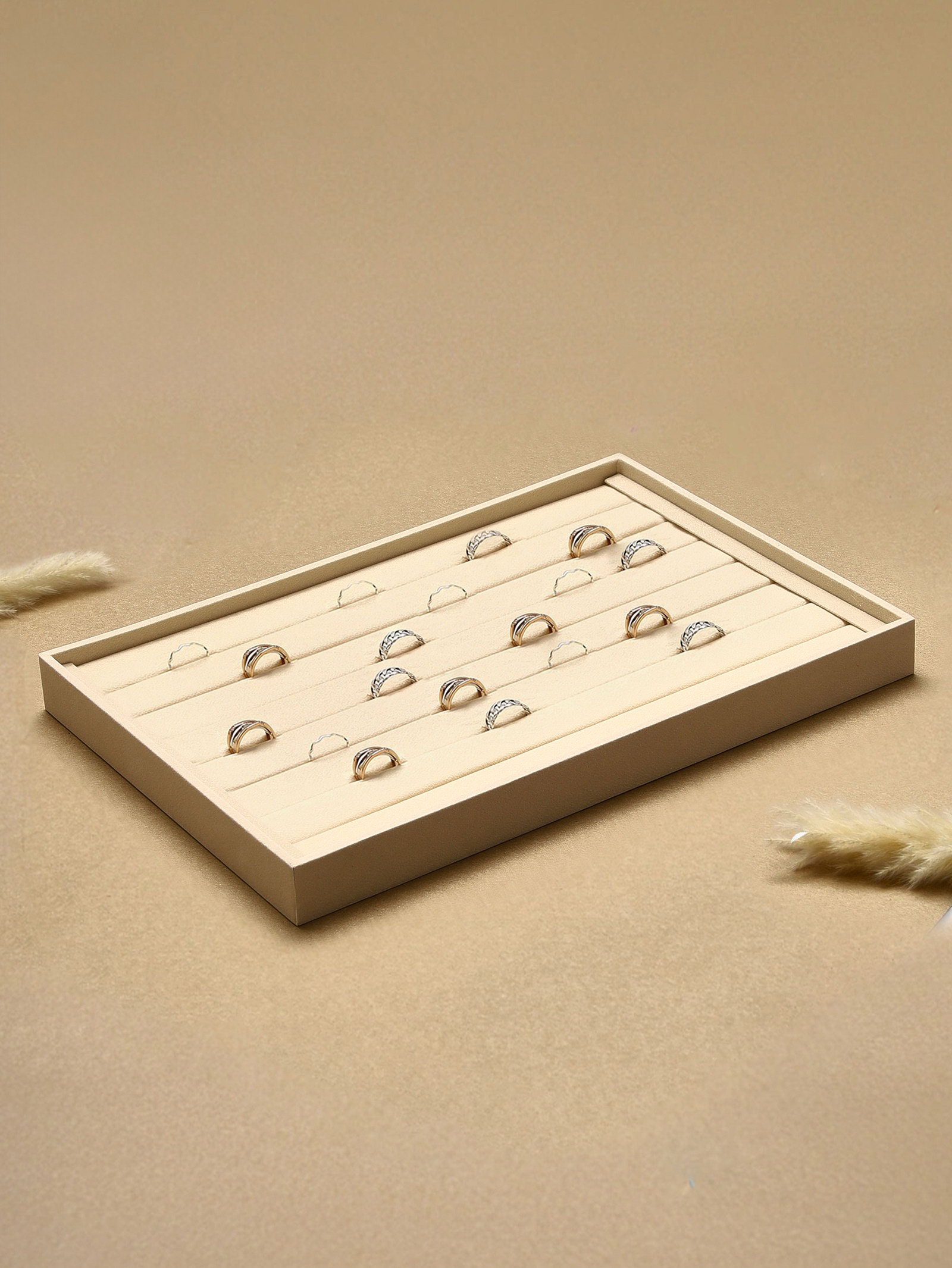 Подставка для колец 7 полос флок, 35x24x3 см, бежевая, 24x35x3 см., QF, Китай