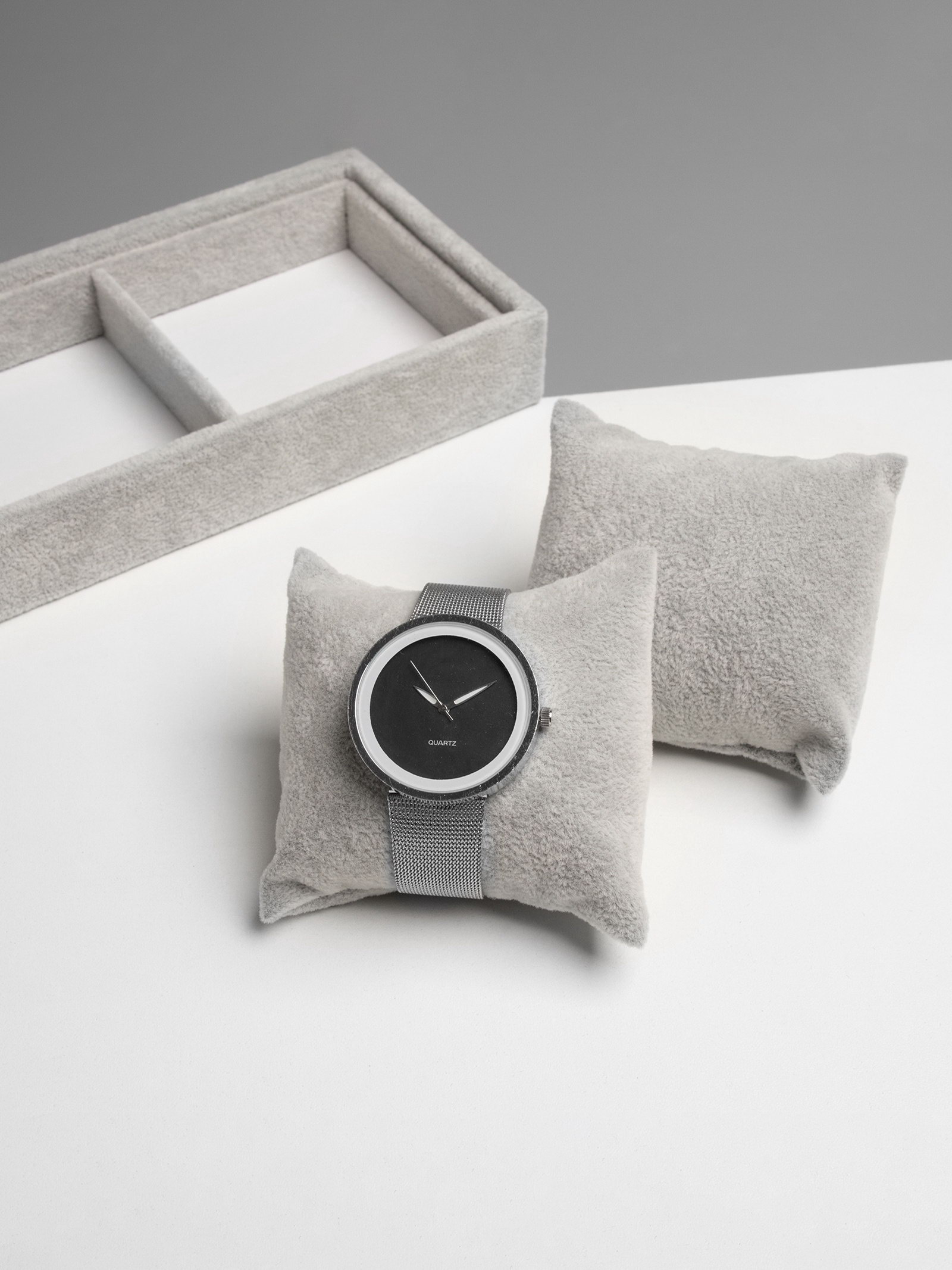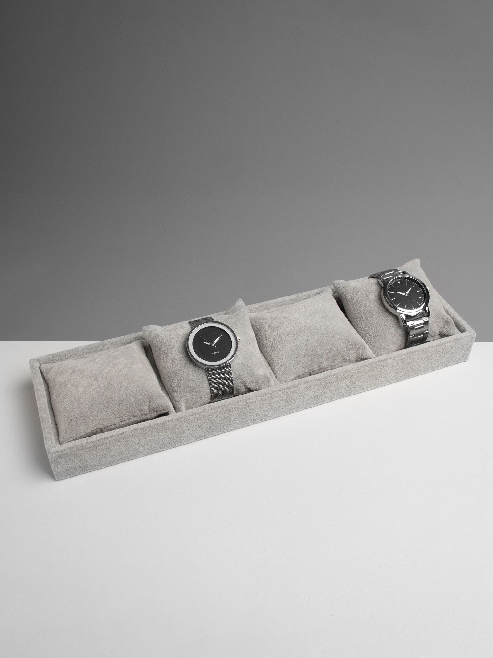 Подставка для часов, браслетов флок, 4 места, 35x10x3 см, серая, 10x35x3 см., QF, Китай