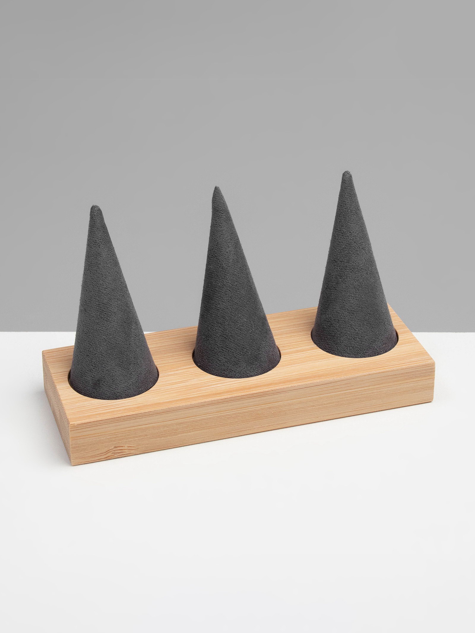 Подставка для колец 13x5x8, дерево, конусы, серая, 5x13x8 см., QF, Китай