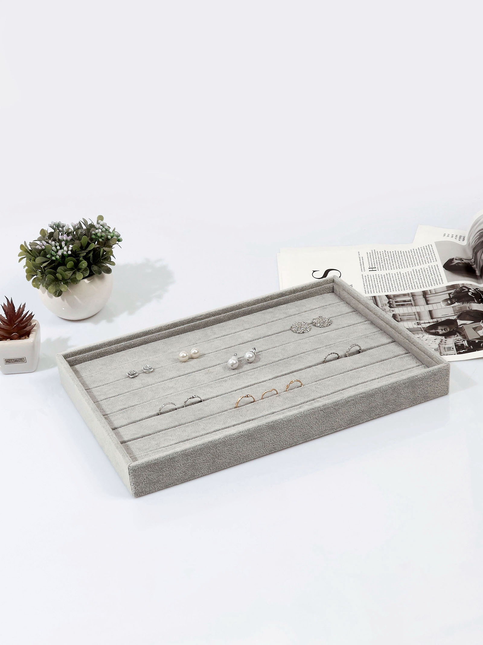 Подставка для колец 7 полос флок, 35x24x3 см, серая, 24x35x3 см., QF, Китай
