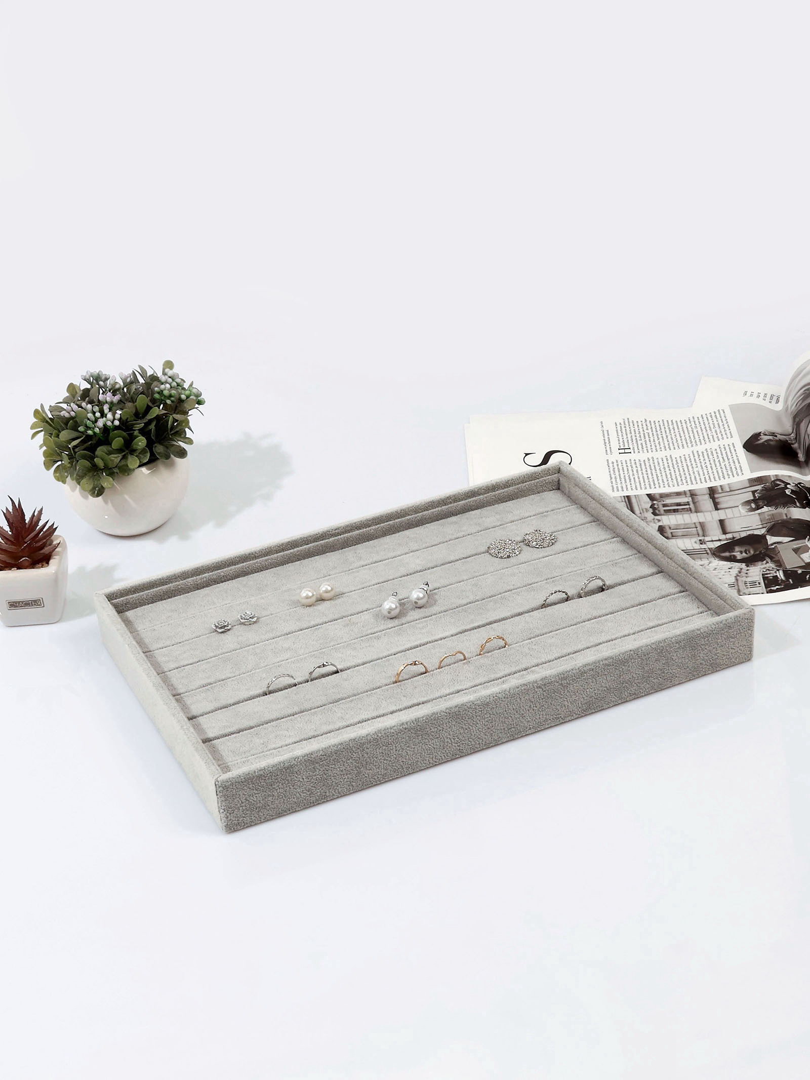 Подставка для колец "QF. Флок", 7 полос, 35x24x3 см, серая, 24x35x3 см., QF, Китай
