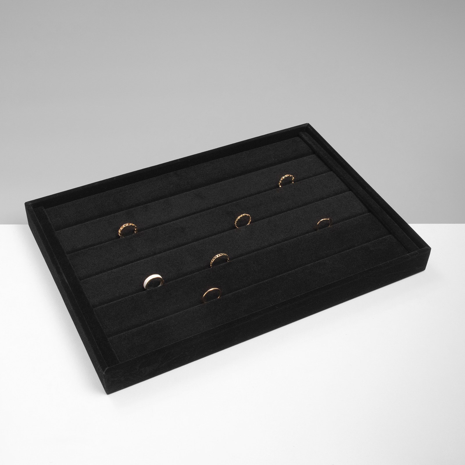 Подставка для колец 5 полос флок, 35x24x3 см, чёрная, 24x35x3 см., QF, Китай