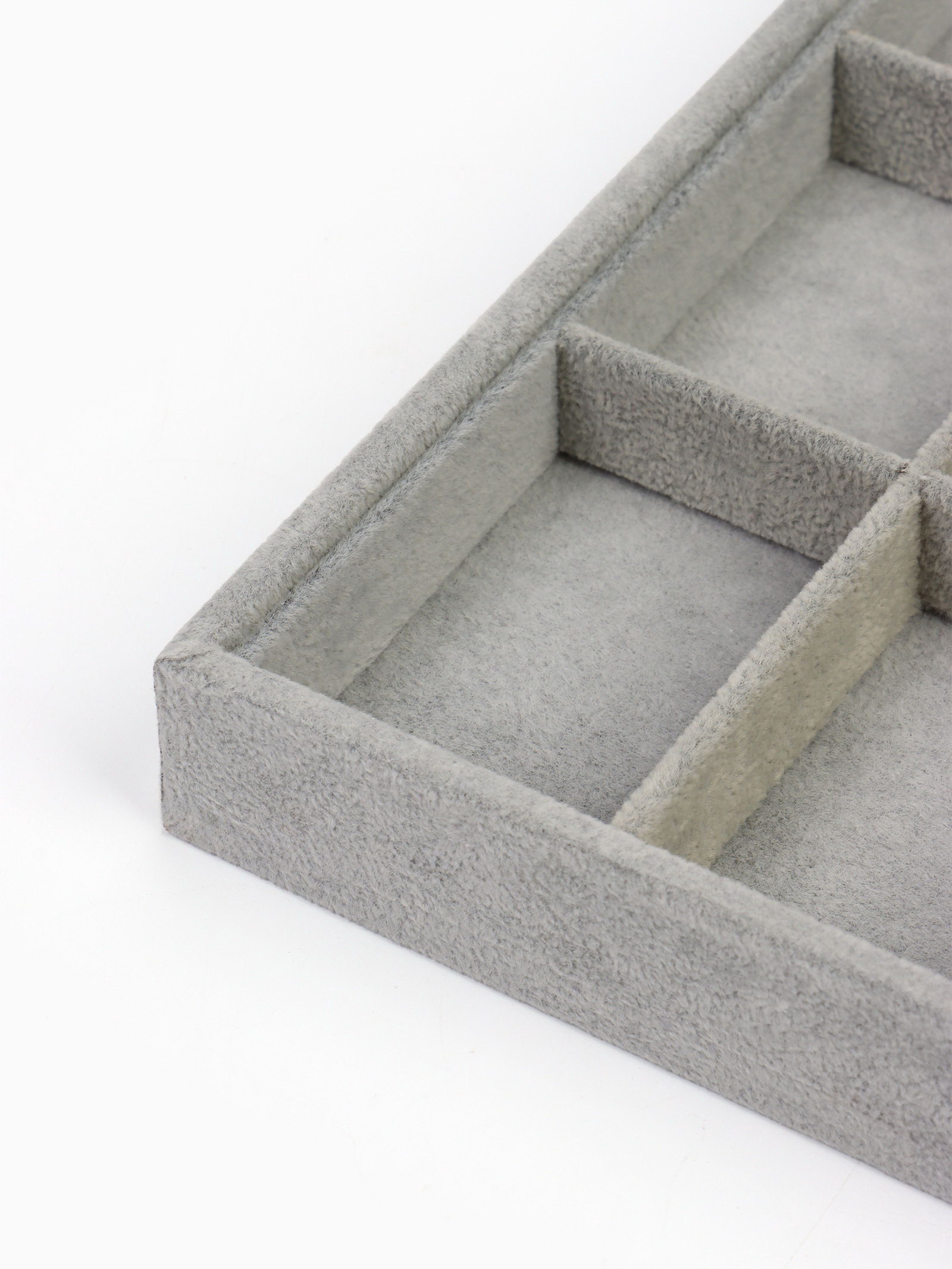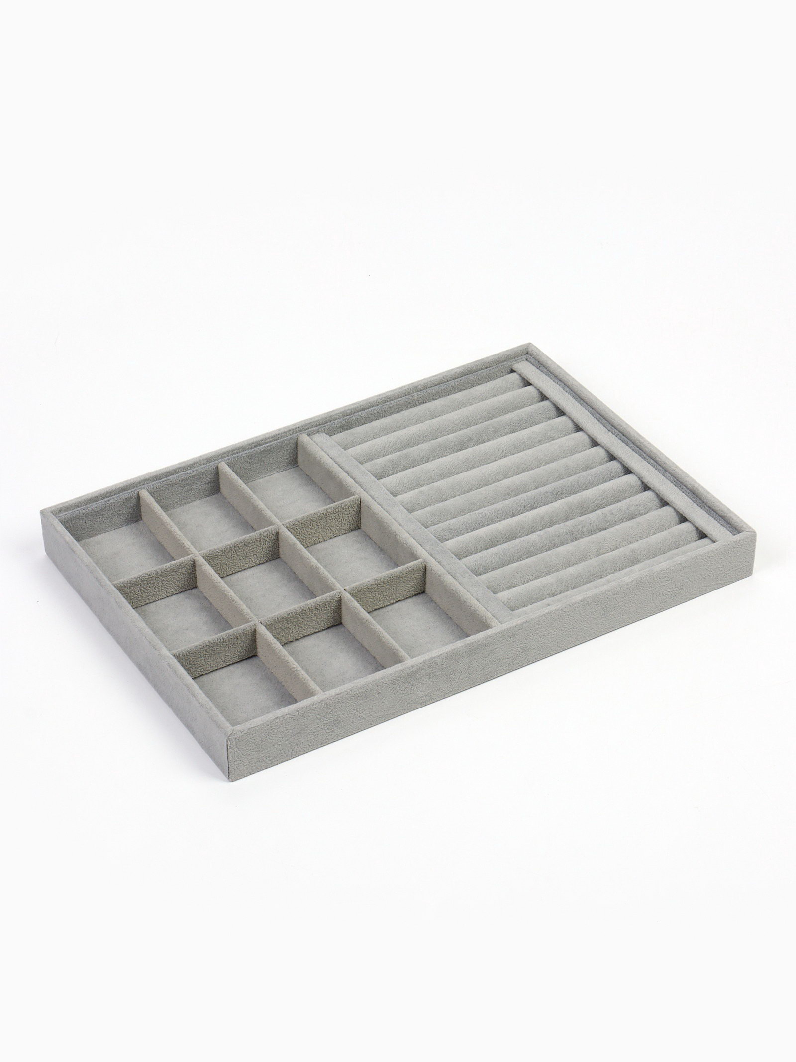 Подставка для украшений 9 ячеек и 11 полос для колец, флок, 35x24x3 см, серая, 24x35x3 см., QF, Китай