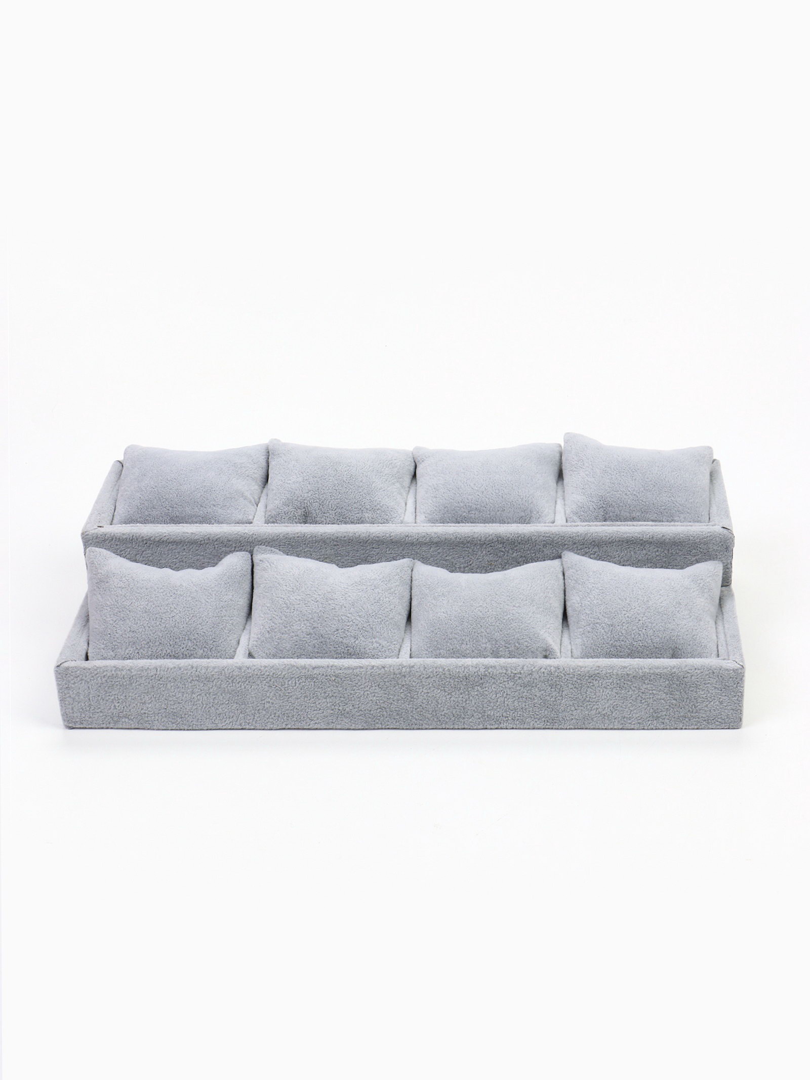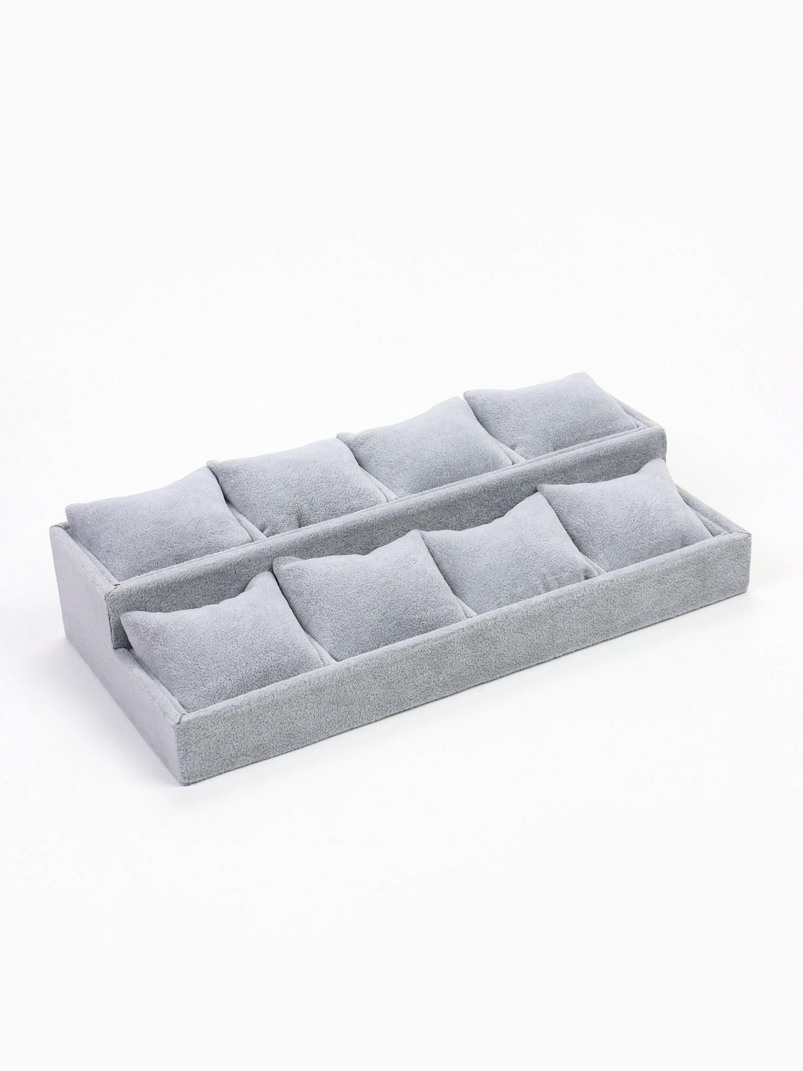 Подставка для часов, браслетов флок, 8 мест, 33x16x3.5 см, серая, 16x33x3.5 см., QF, Китай