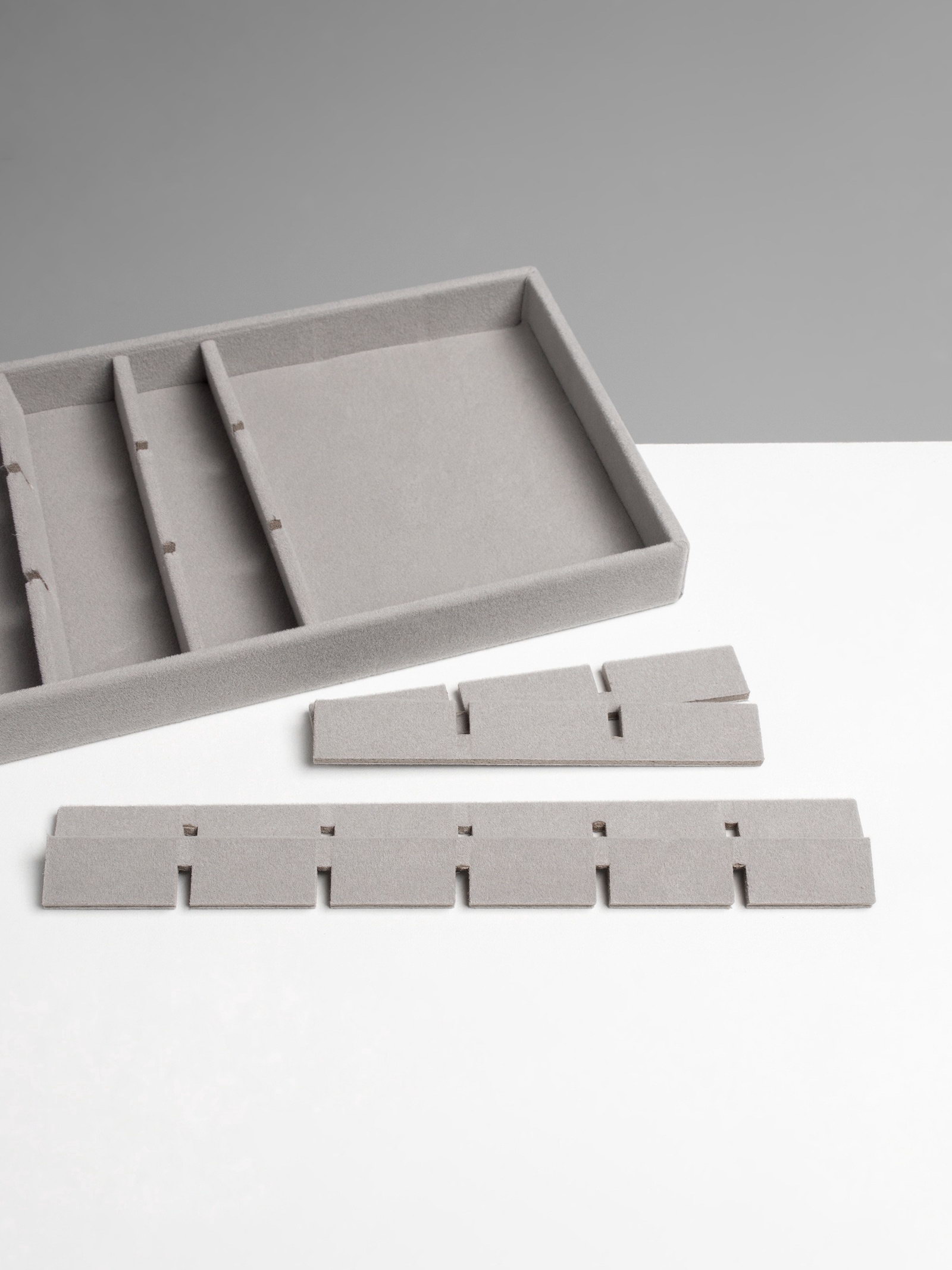 Подставка для украшений18 ячеек, флок, 21x12.3x2.5 см, серая, 12.3x21x2.5 см., QF, Китай