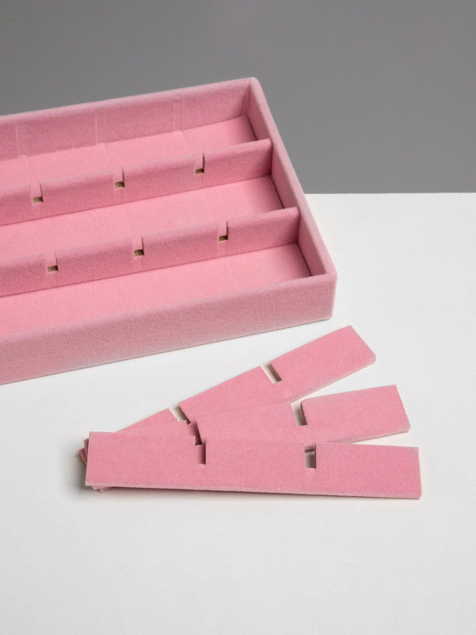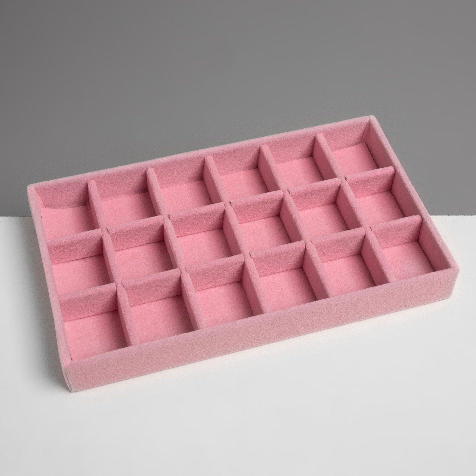 Подставка для украшения 18 ячеек, флок, 21x12.3x2.5 см, розовая, 12.3x21x2.5 см., QF, Китай