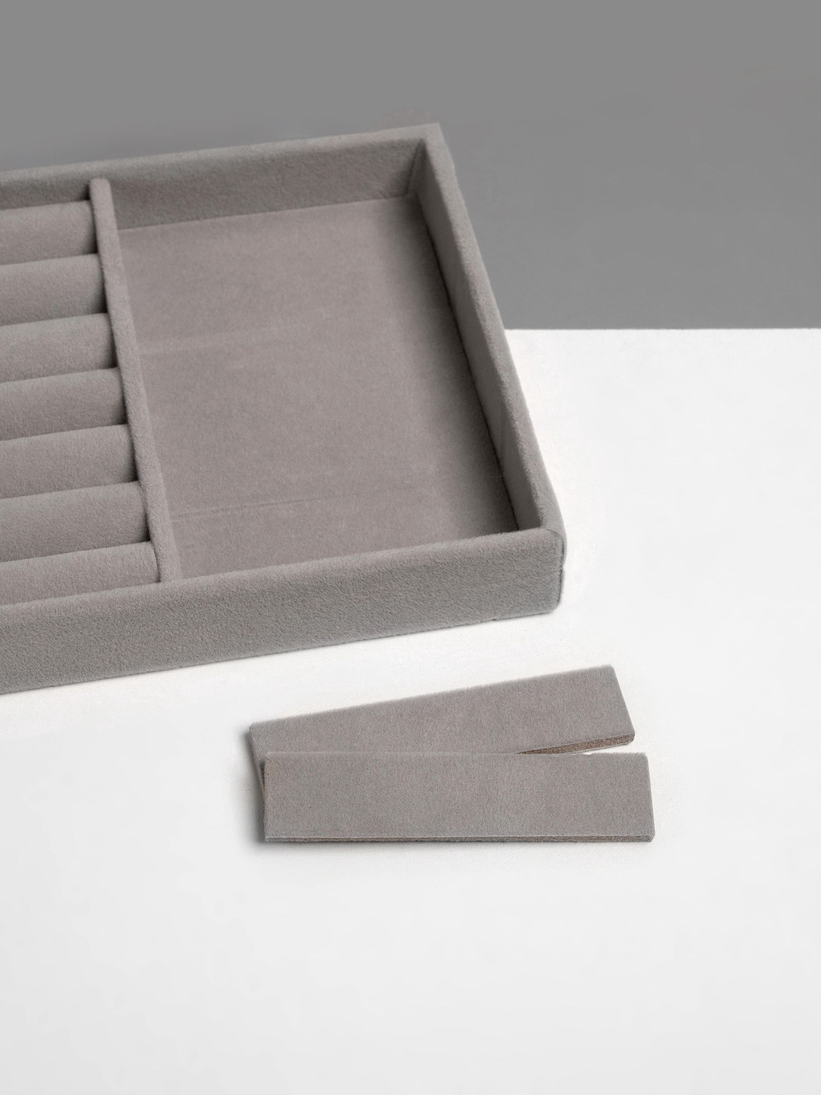 Подставка для украшений 3 ячейки и 7 полос для колец, флок, 21x12.3x2.5 см, серая, 12.3x21x2.5 см., QF, Китай