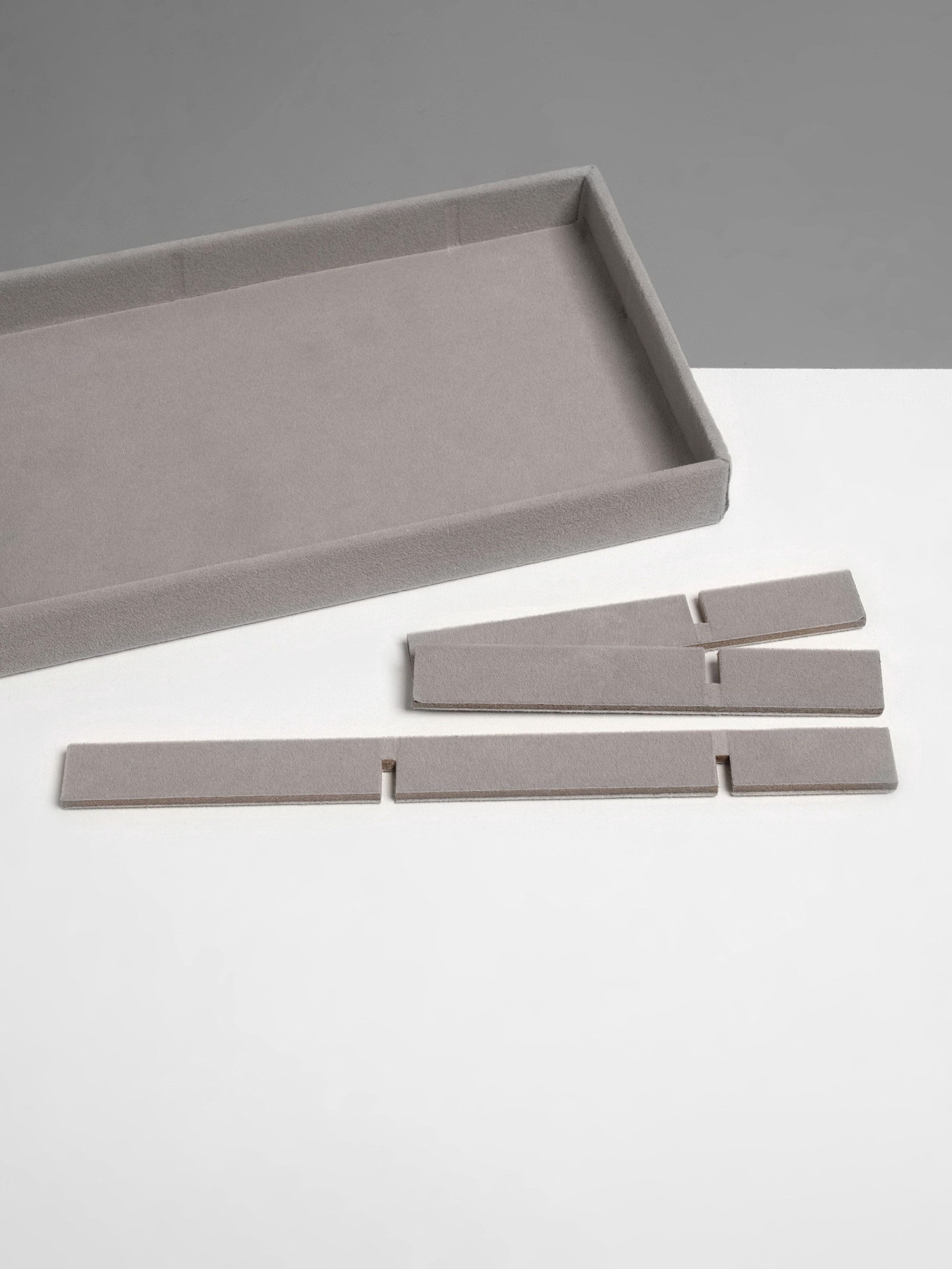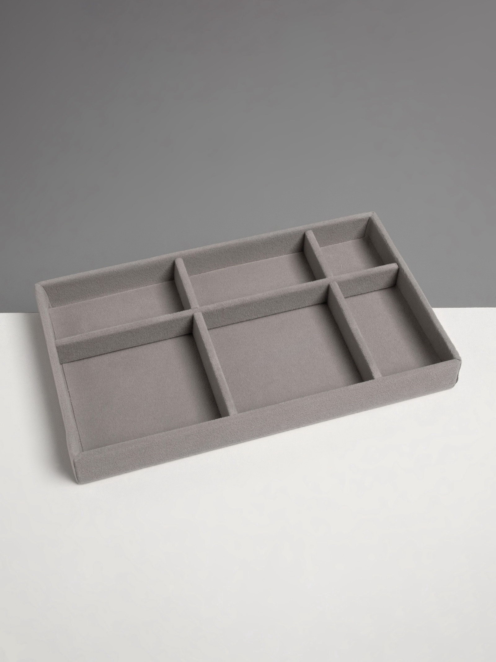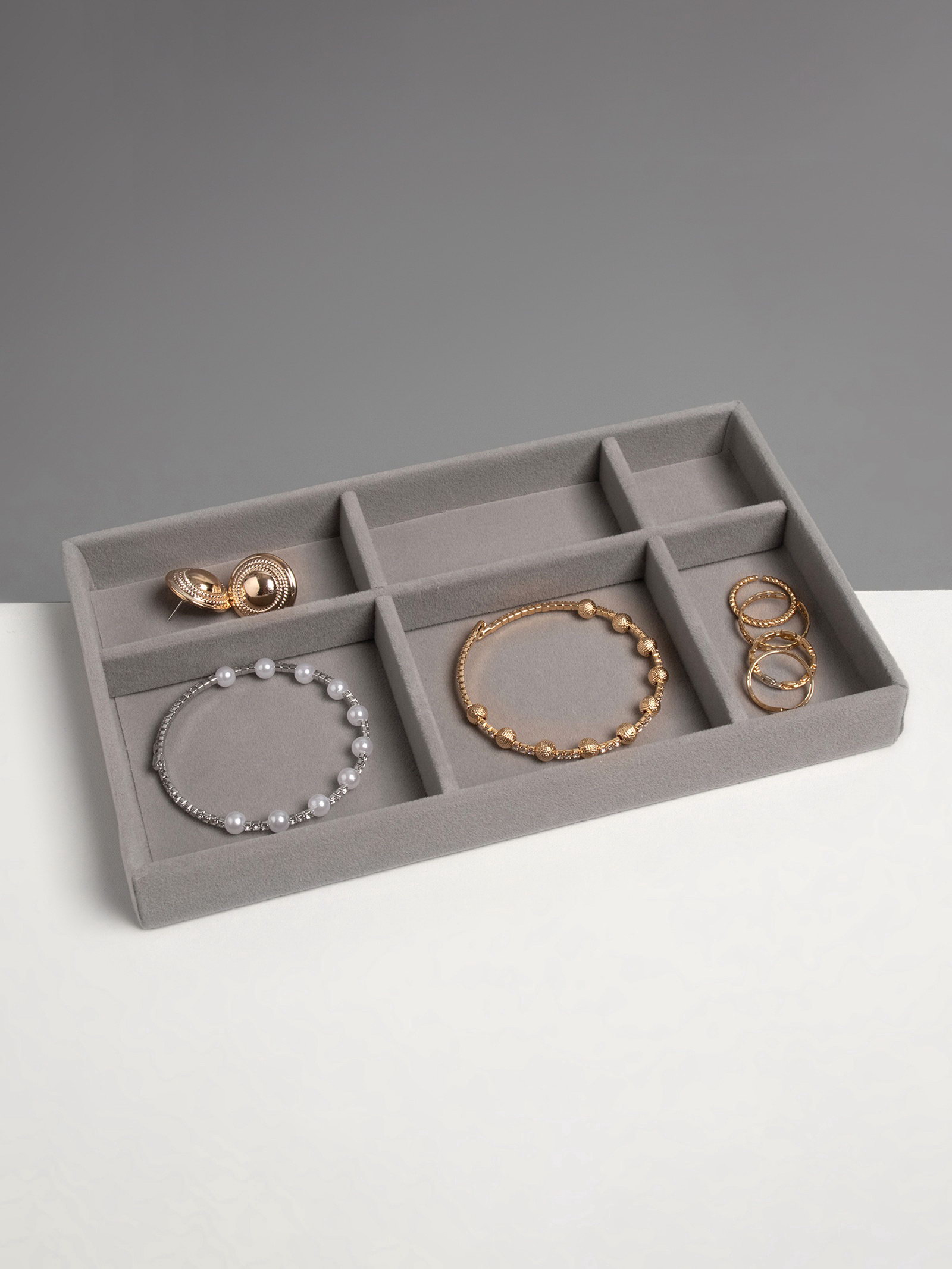 Подставка для украшений 6 ячеек, флок, 21x12.3x2.5 см, серая, 12.3x21x2.5 см., QF, Китай