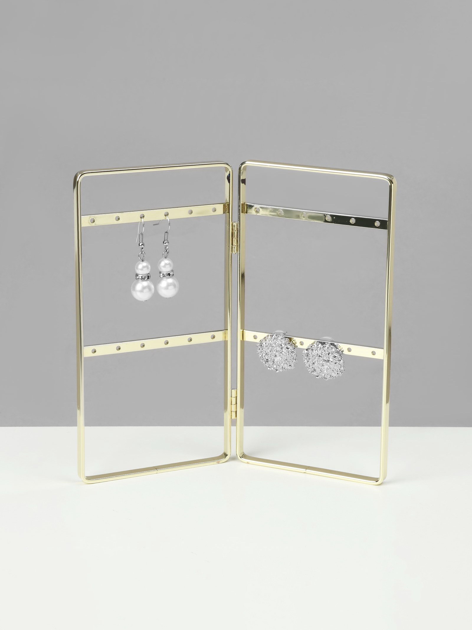 Подставка-книжка под серьги, 2 секции, 2 ряда, 16x20x2 см, цвет золотой, 20x16x2 см., QF, Китай