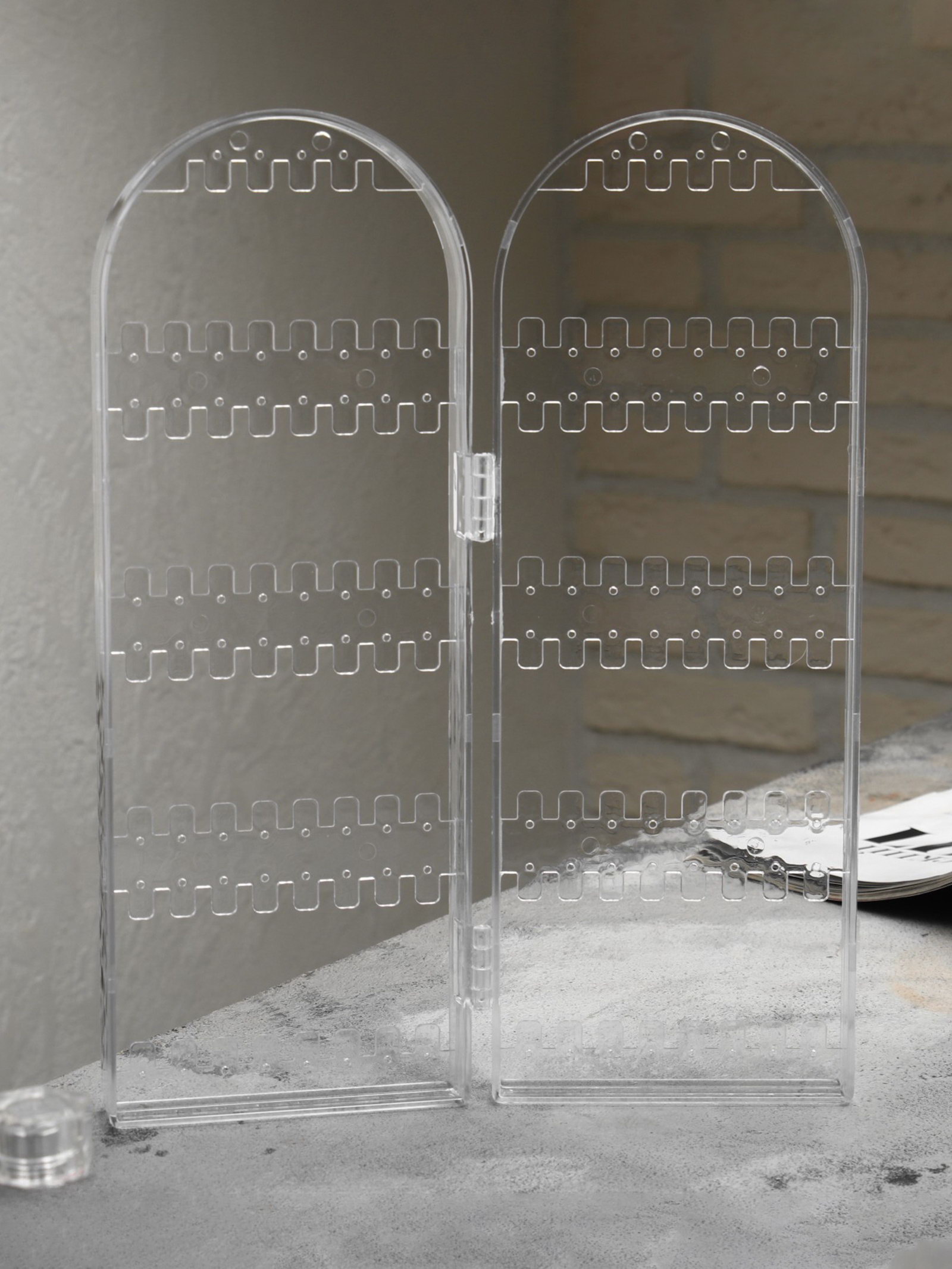 Подставка-книжка под серьги 2 секции, 8 рядов, 21x1x28 см прозрачная, 1x21x28 см., QF, Китай
