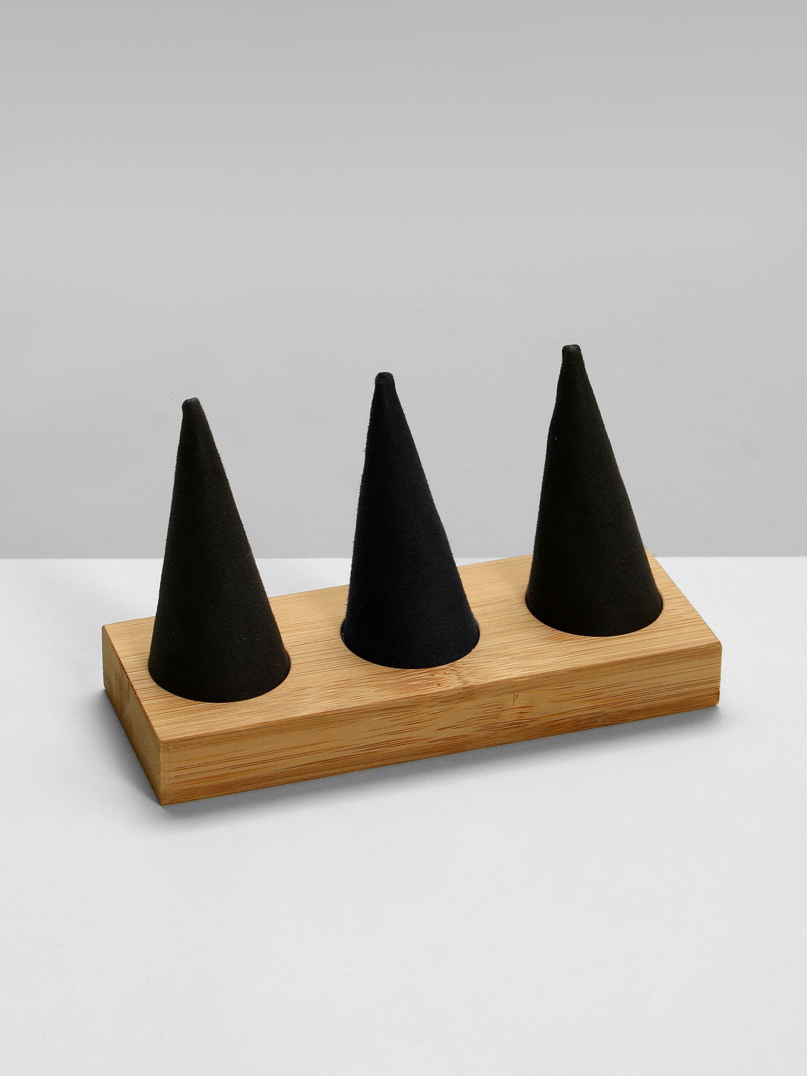 Подставка для колец 13x5x8, дерево, конусы, чёрная, 5x13x8 см., QF, Китай