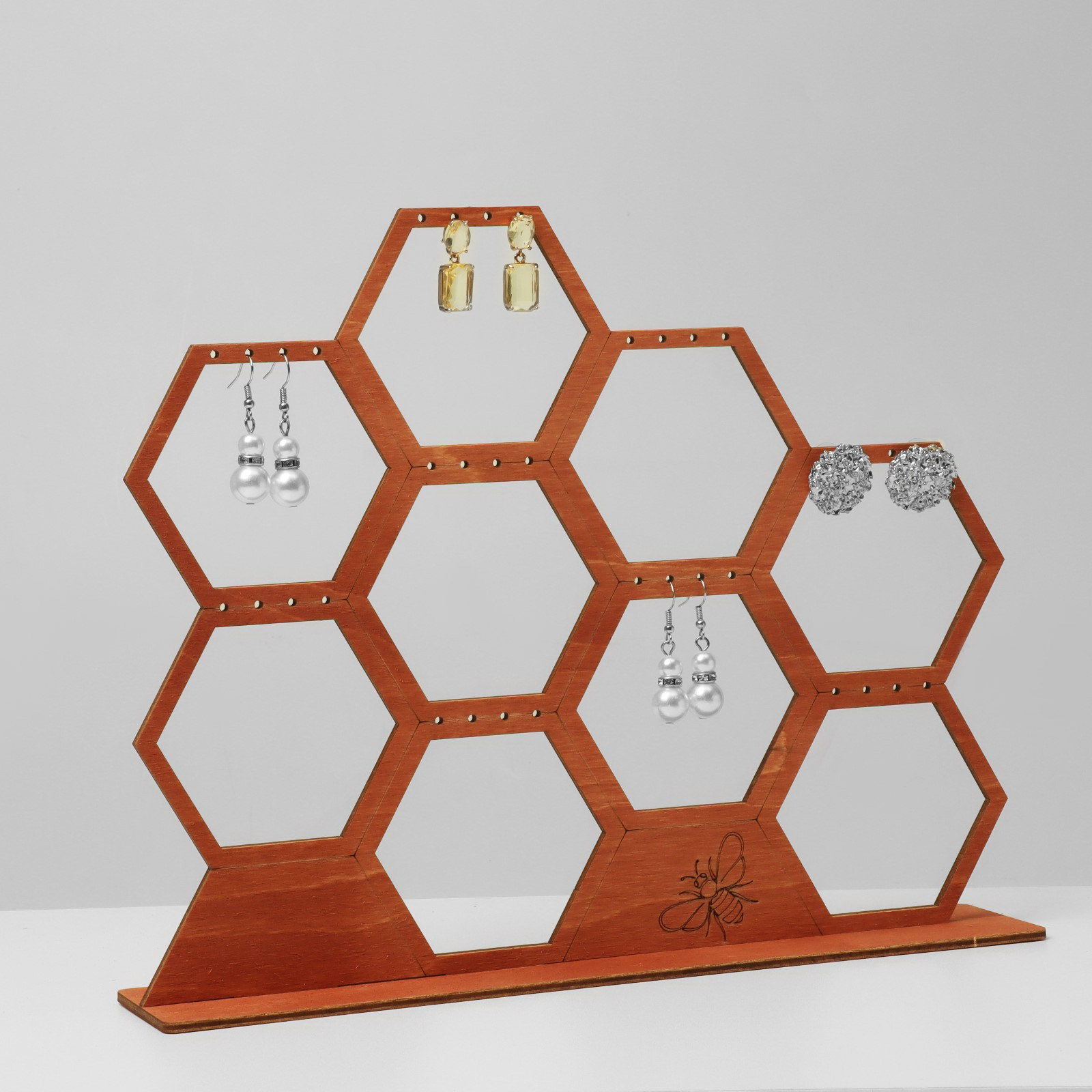 Подставка для украшений "Соты", 28x5.5x23 см, фанера, цвет полисандр, 5.5x28x23 см., Россия