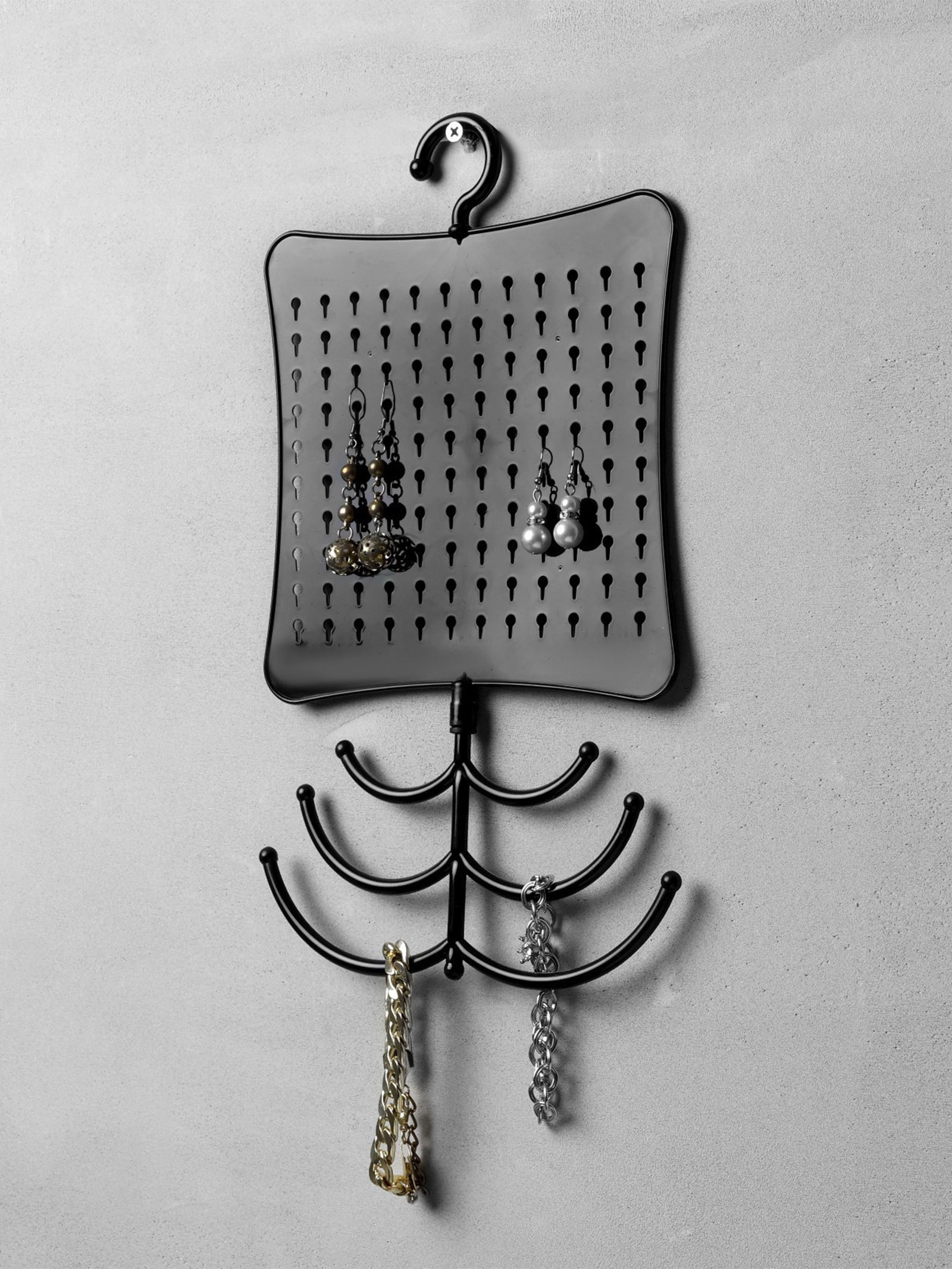 Органайзер для украшений с крючком, 60 пар, 6 крючков, пластик, 20x0.5x35 см, чёрный, 0.5x20x35 см., QF, Китай