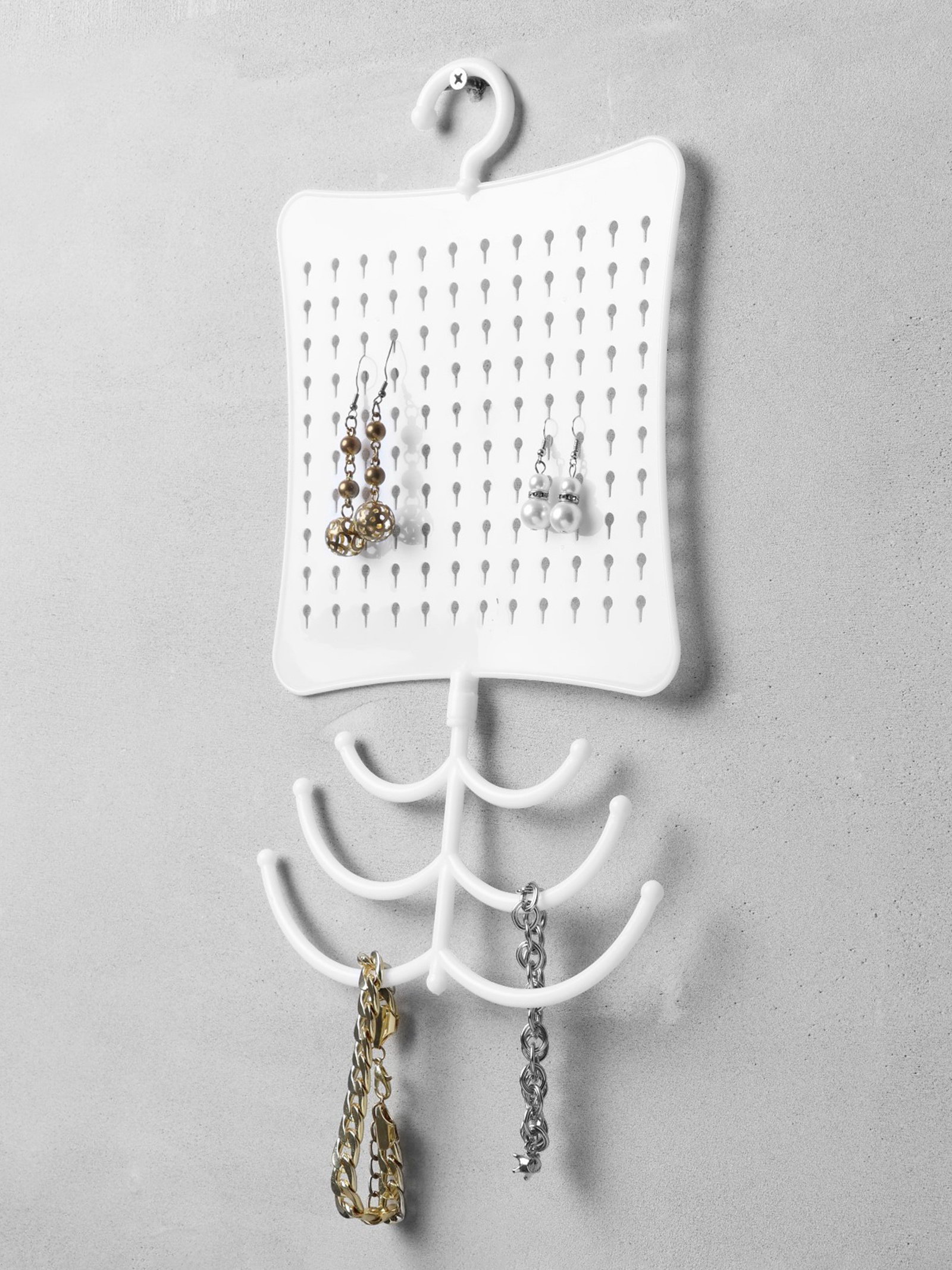 Органайзер для украшений с крючком, 60 пар, 6 крючков, пластик, 20x0.5x35 см, белый, 0.5x20x35 см., QF, Китай