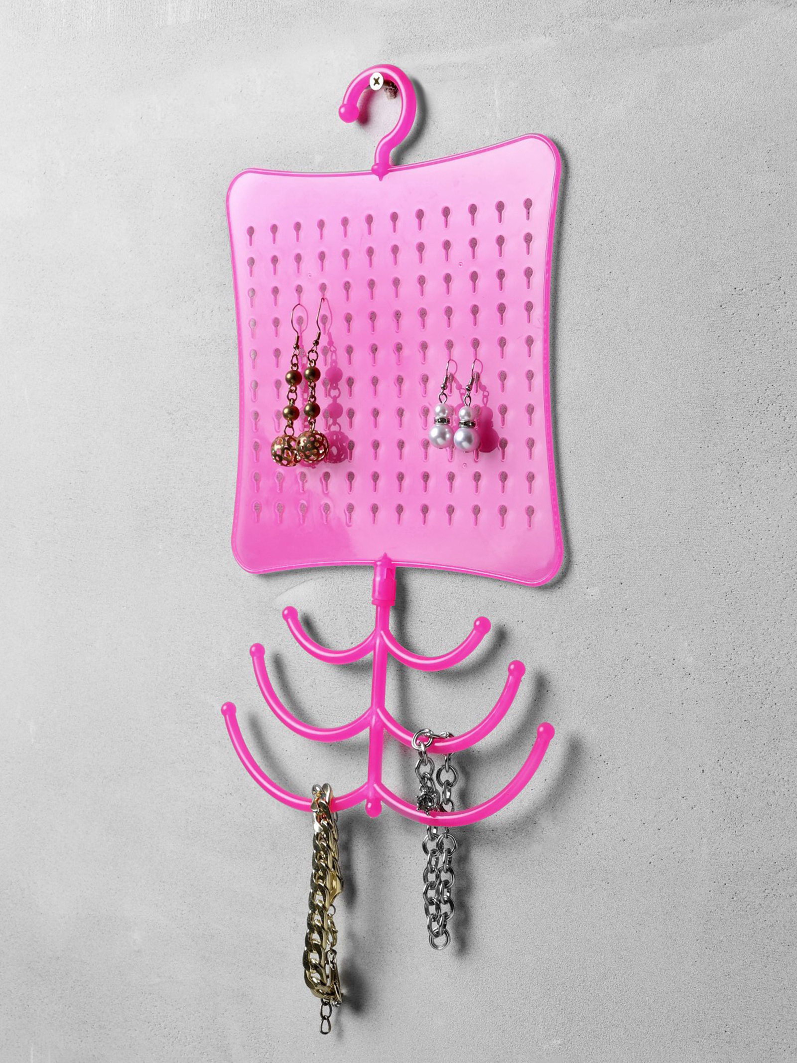 Органайзер для украшений с крючком, 60 пар, 6 крючков, пластик, 20x0.5x35 см, розовый, 0.5x20x35 см., QF, Китай