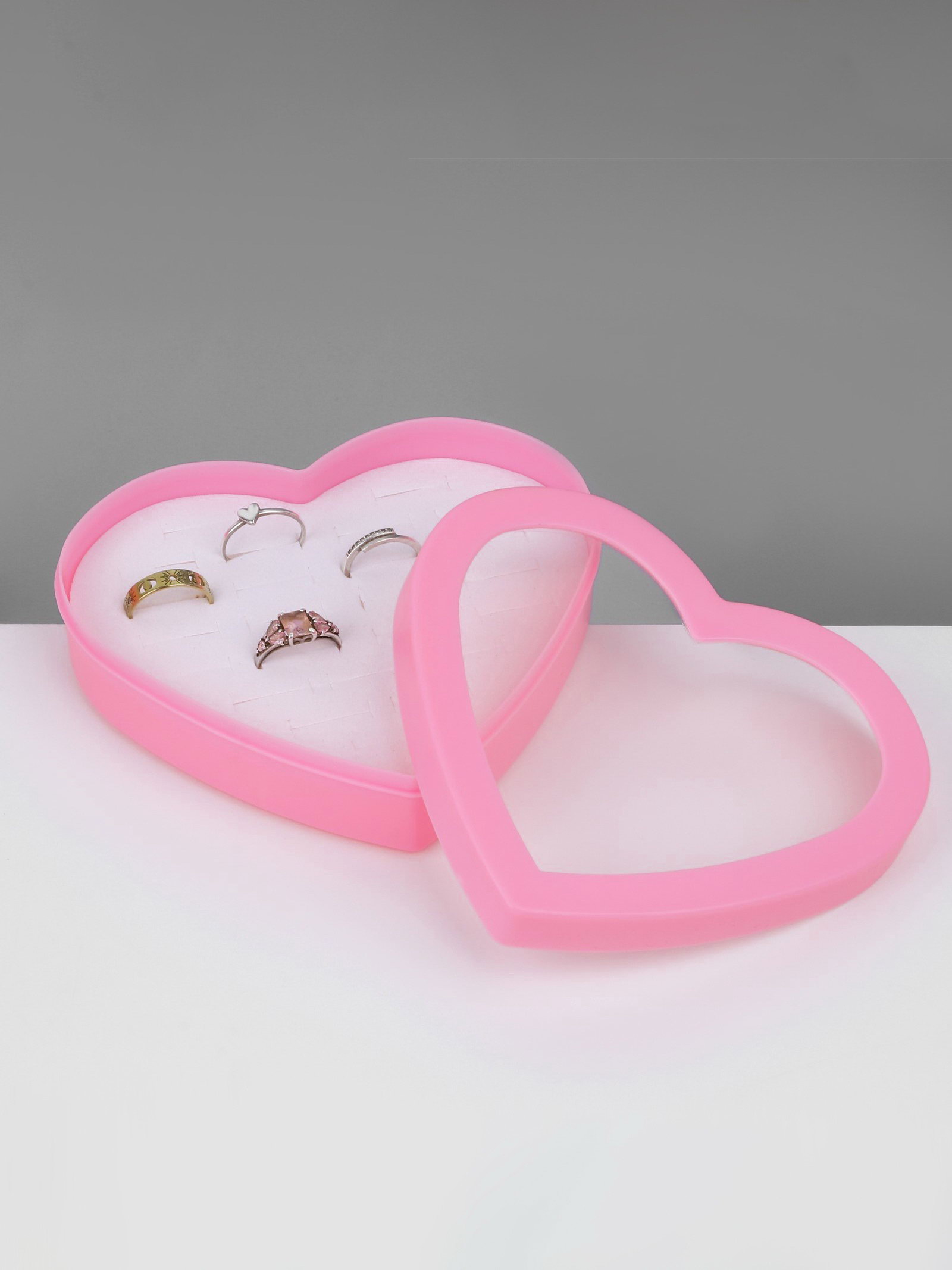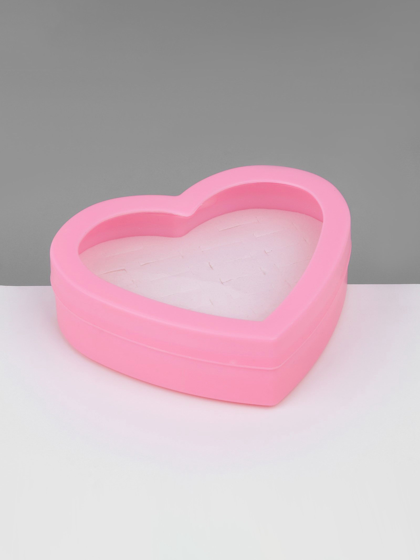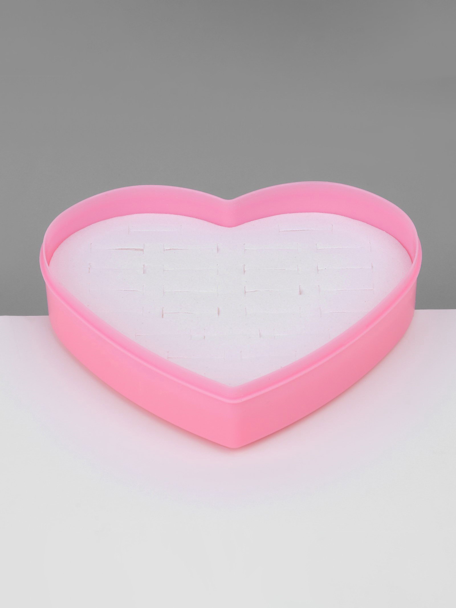 Подставки для украшений с крышкой "Дорожная сердце" 24 места, пластик, 12x9.5x3 см, розовая, 9.5x12x3 см., Китай
