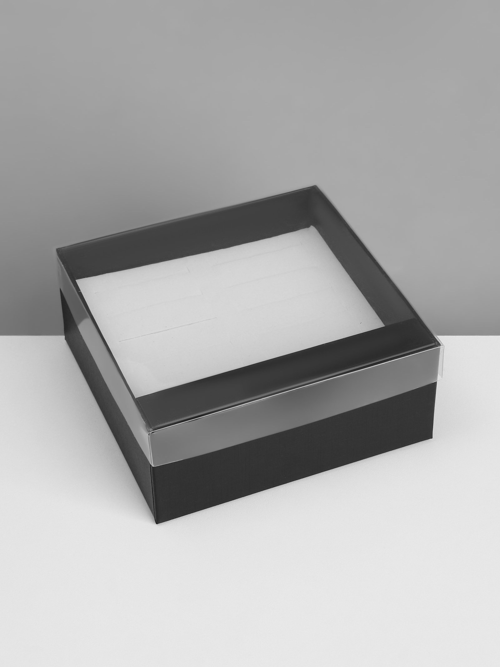 Подставка для украшений "Коробочка" 12 мест, 14.5x14.5x6 см, чёрная, 14.5x14.5x6 см., Китай