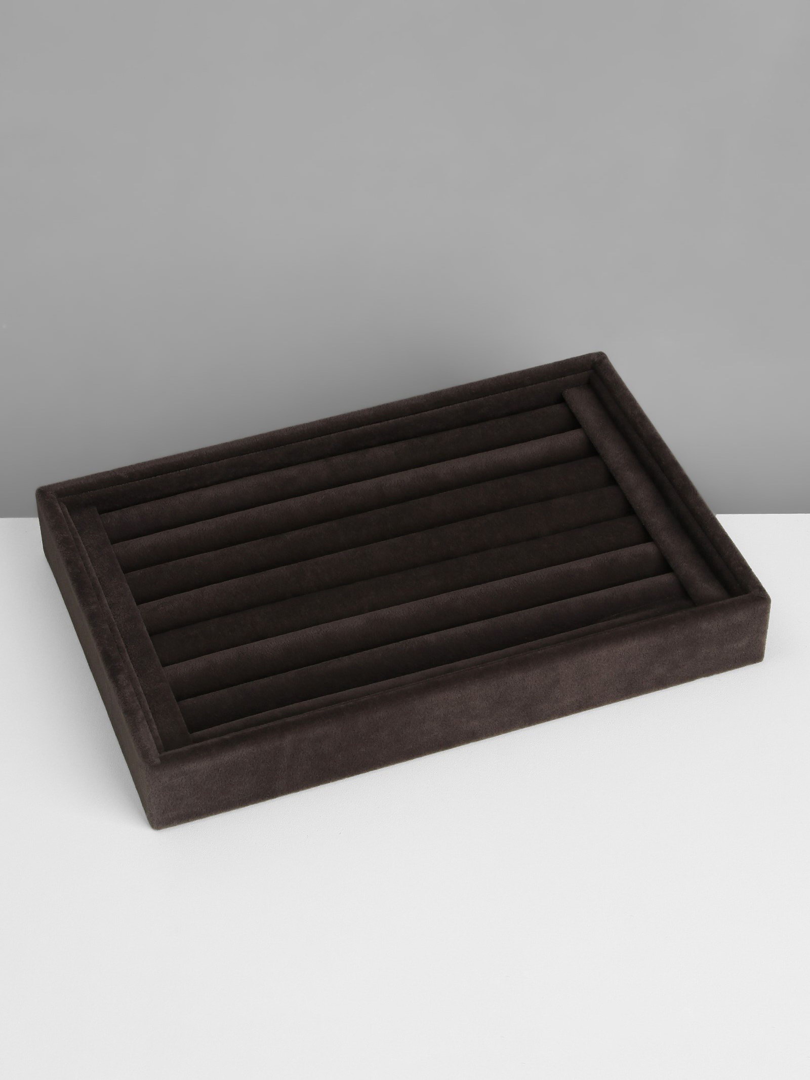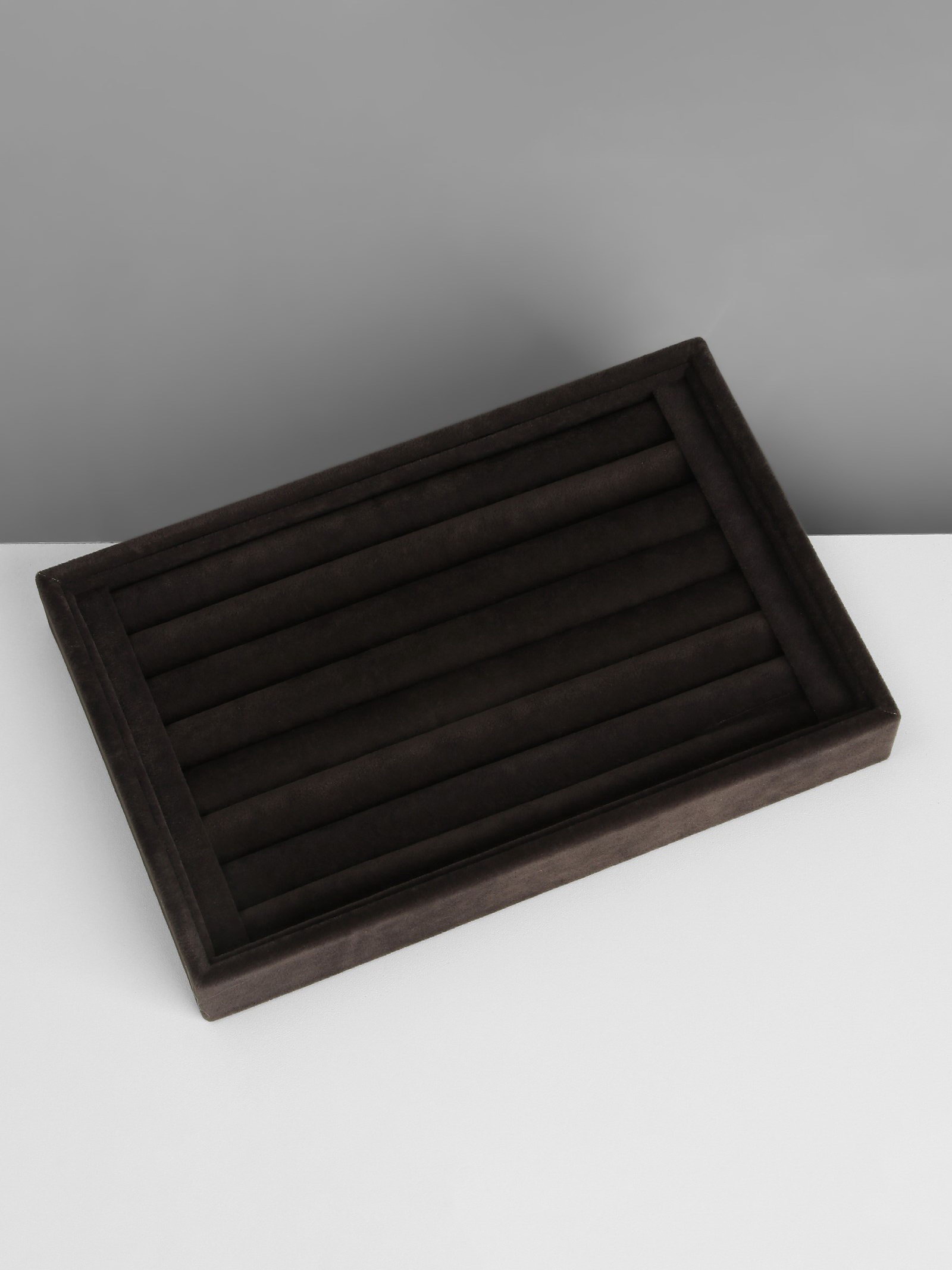 Подставка под кольца7 полос, флок, 22.5x15x3 см, серая, графит, 15x22.5x3 см., QF, Китай