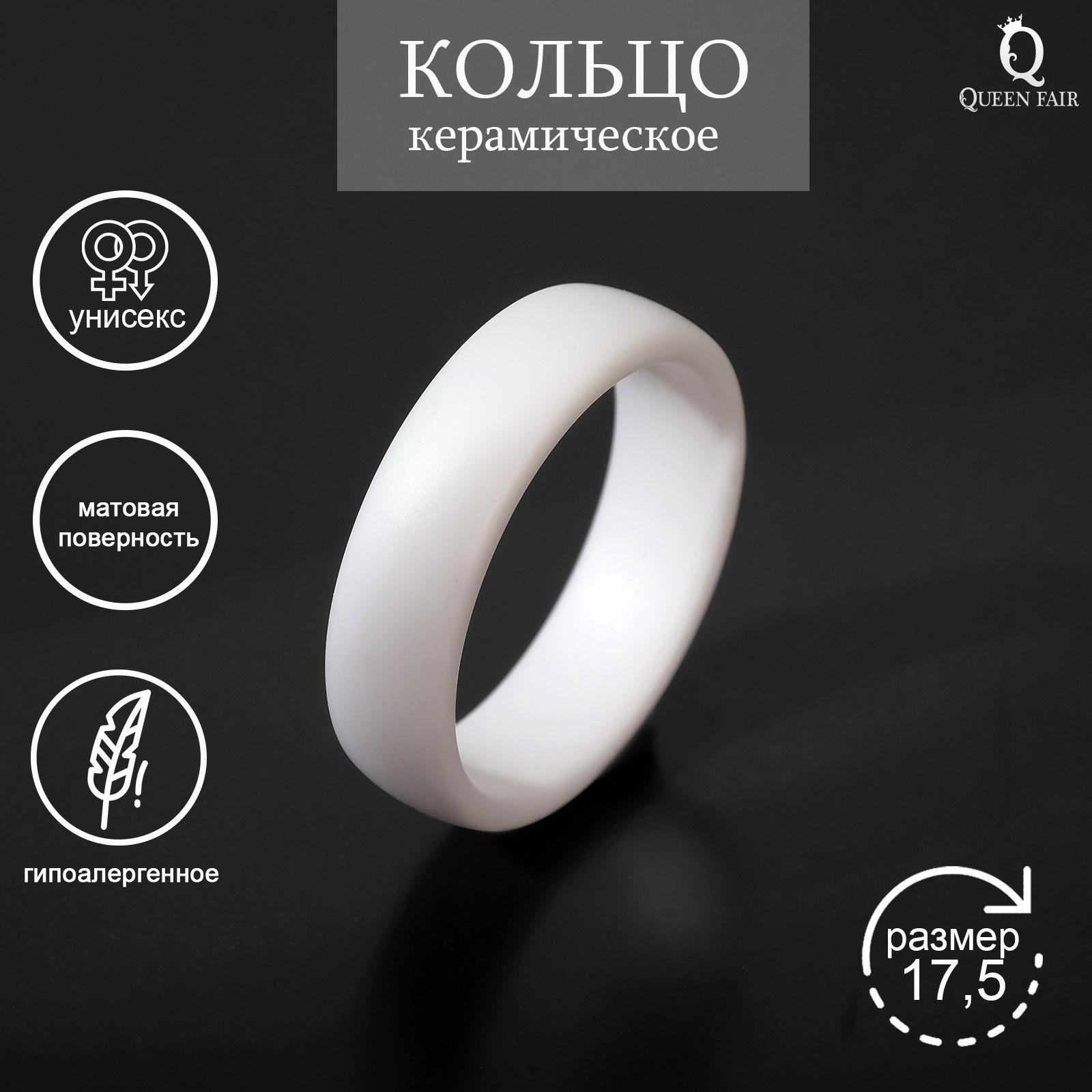 Кольцо керамика "Линия", белое, матовое, 17.5 размер, 1.8x1.8x0.6 см., QF, Китай