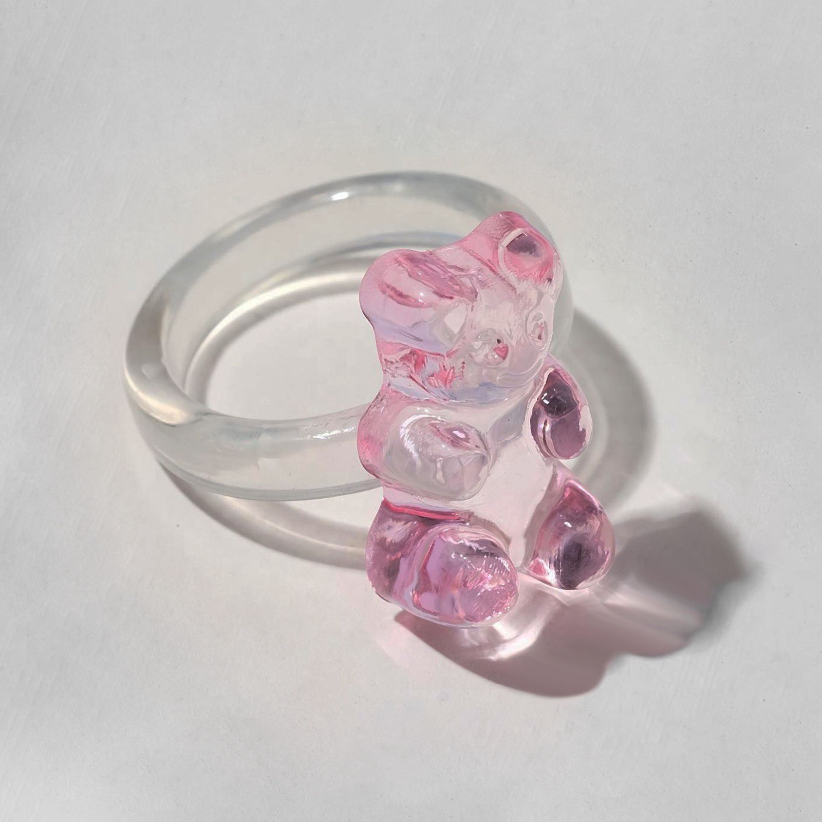 Кольцо "Мармеладный мишка", цвет розовый, размер 17, 1.7x1.7x3 см., QF, Китай