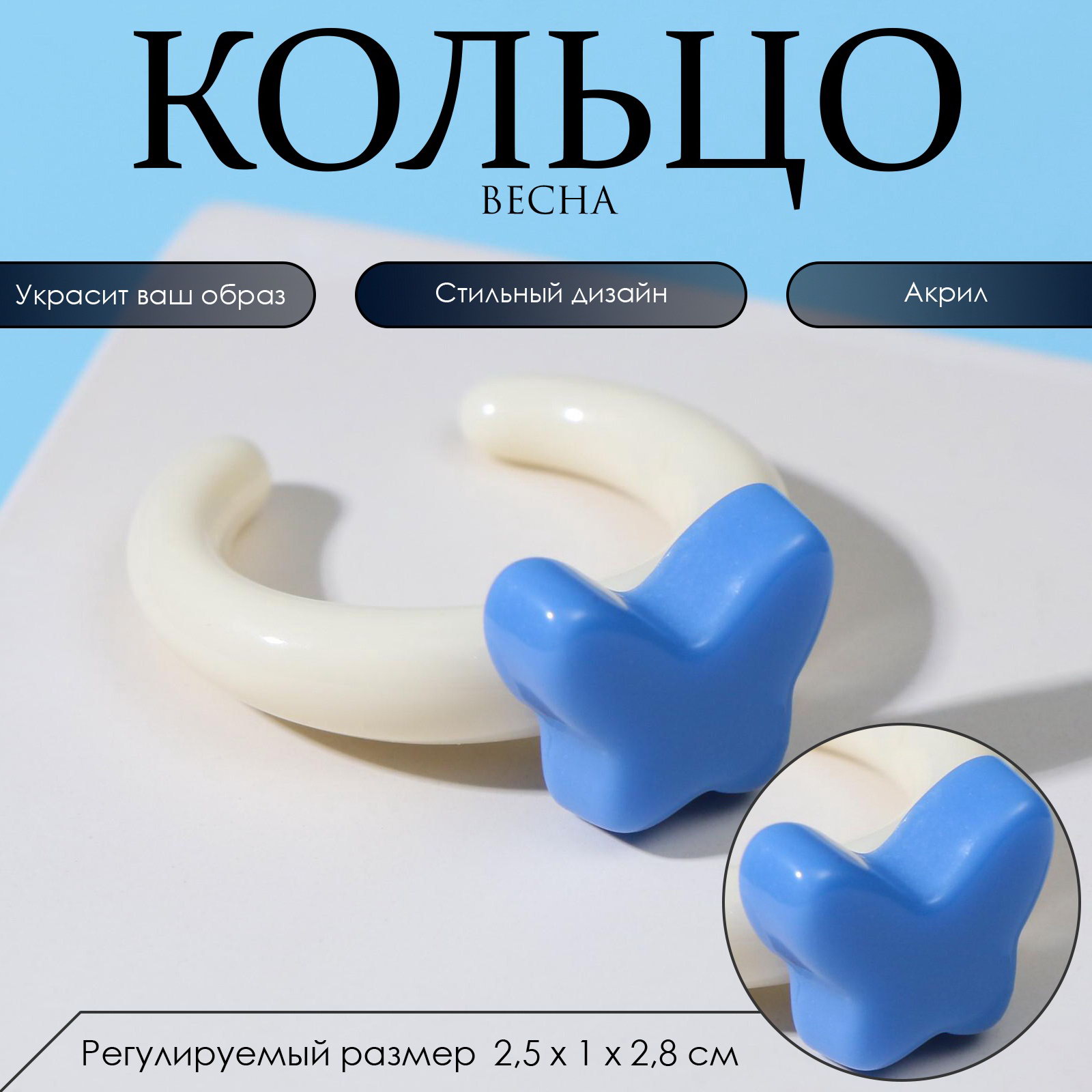 Кольцо "Весна" бабочка, цвет бело-голубой, безразмерное, 1x2.5x2.8 см., Китай