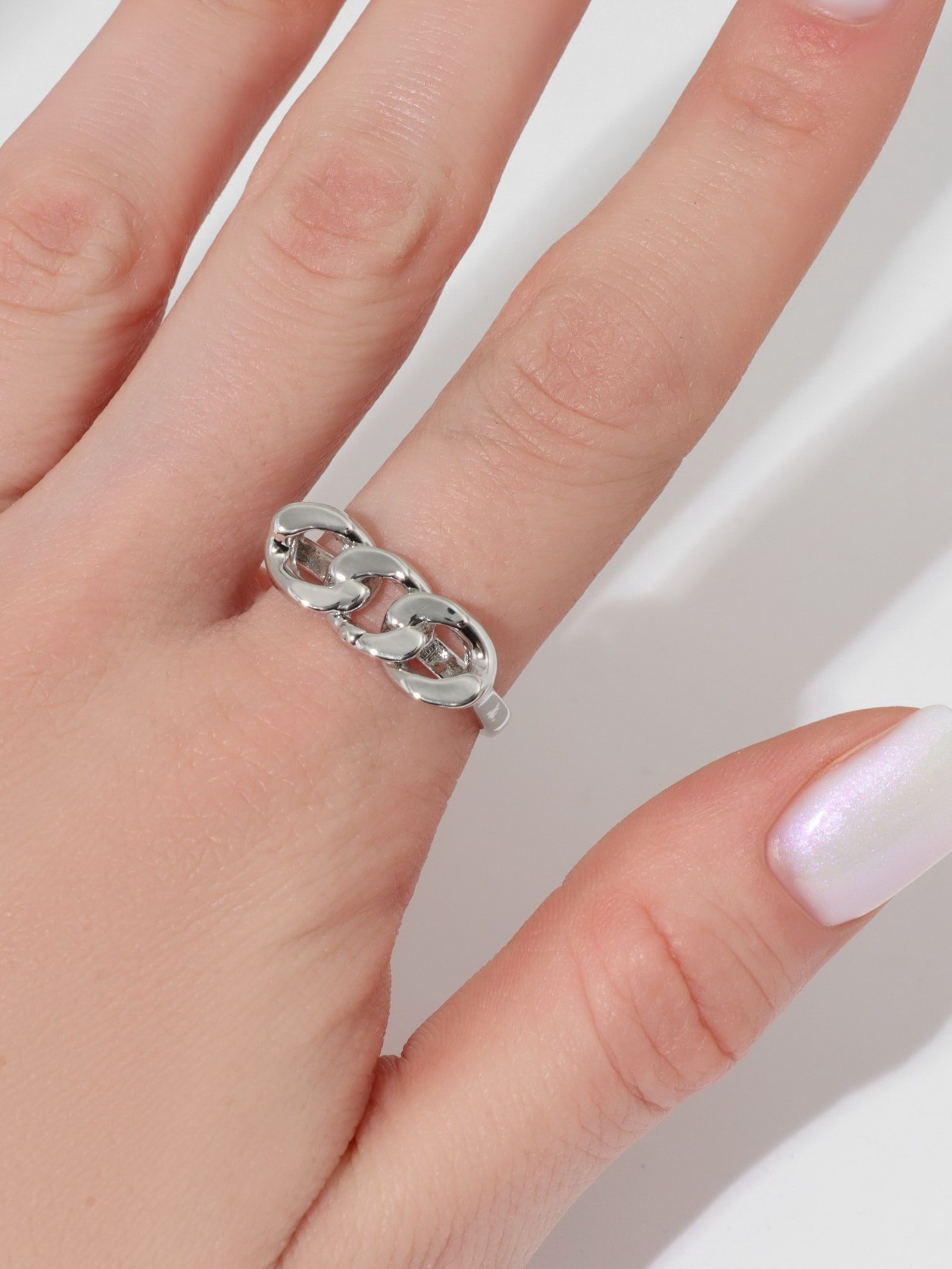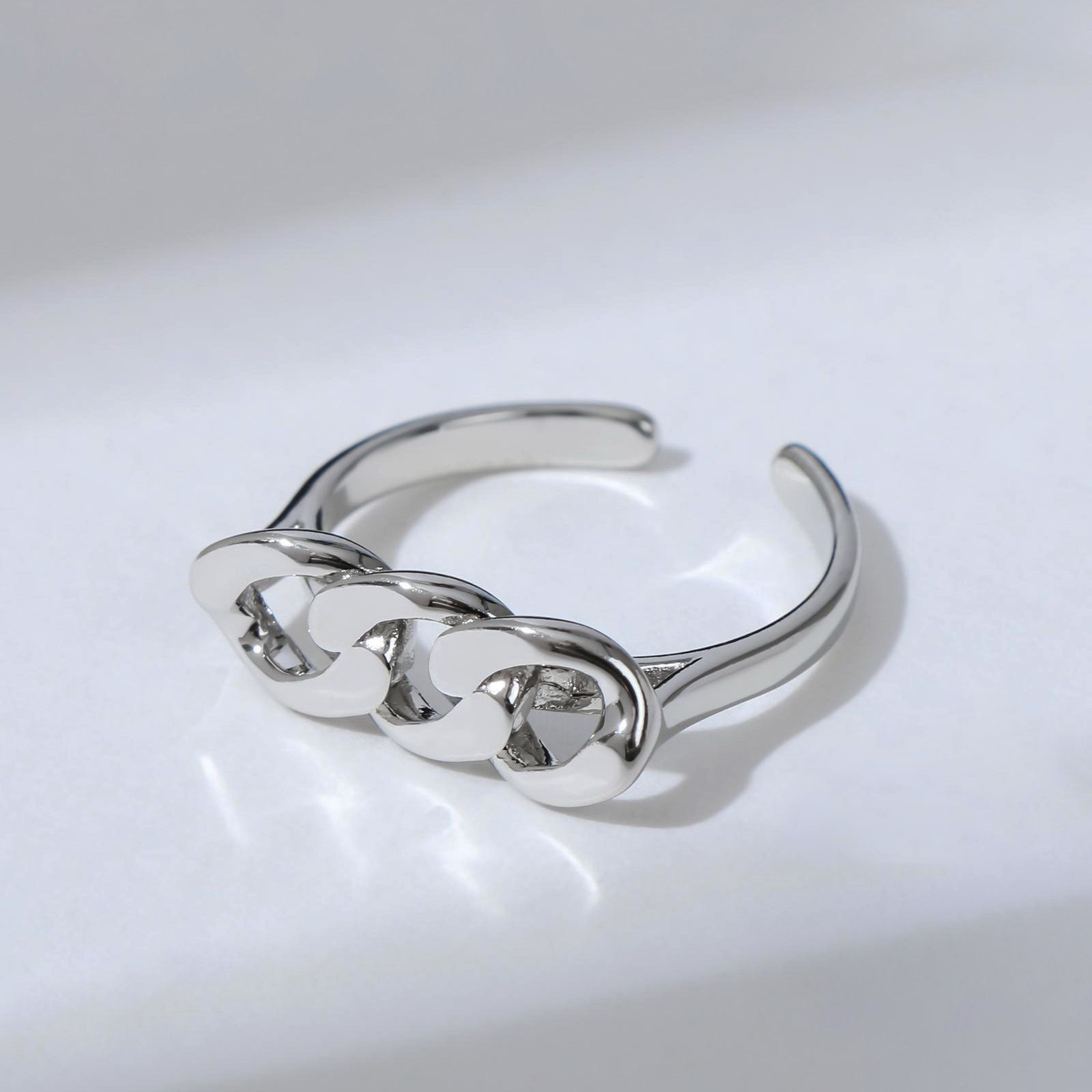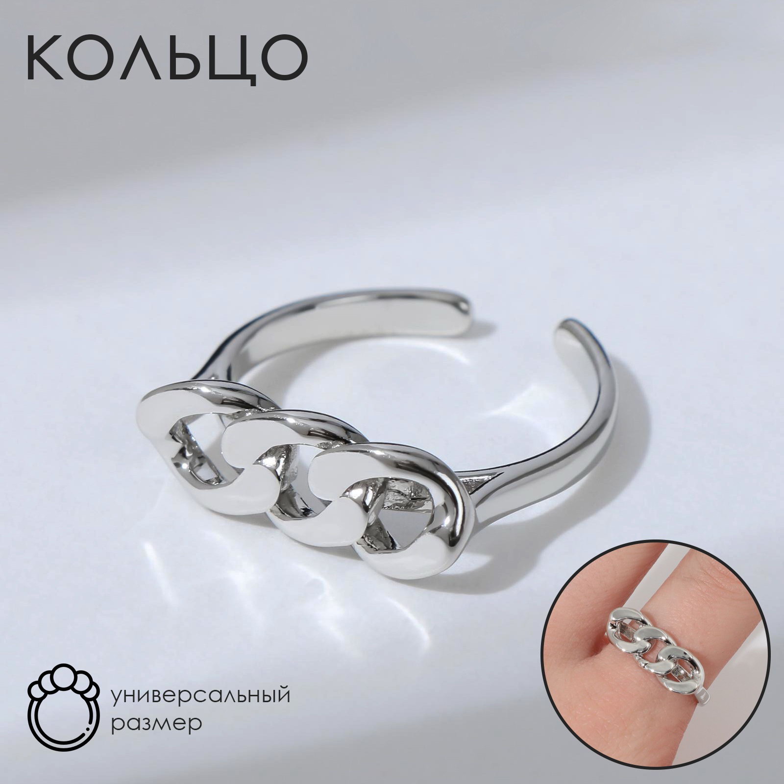 Кольцо "Цепь" три звена, цвет серебро, безразмерное, 2x2x0.6 см., Queen fair, Китай