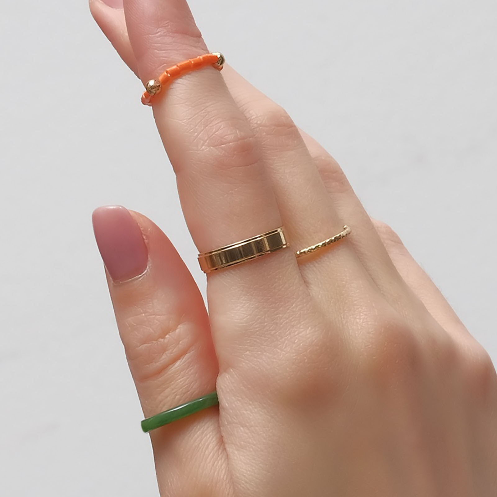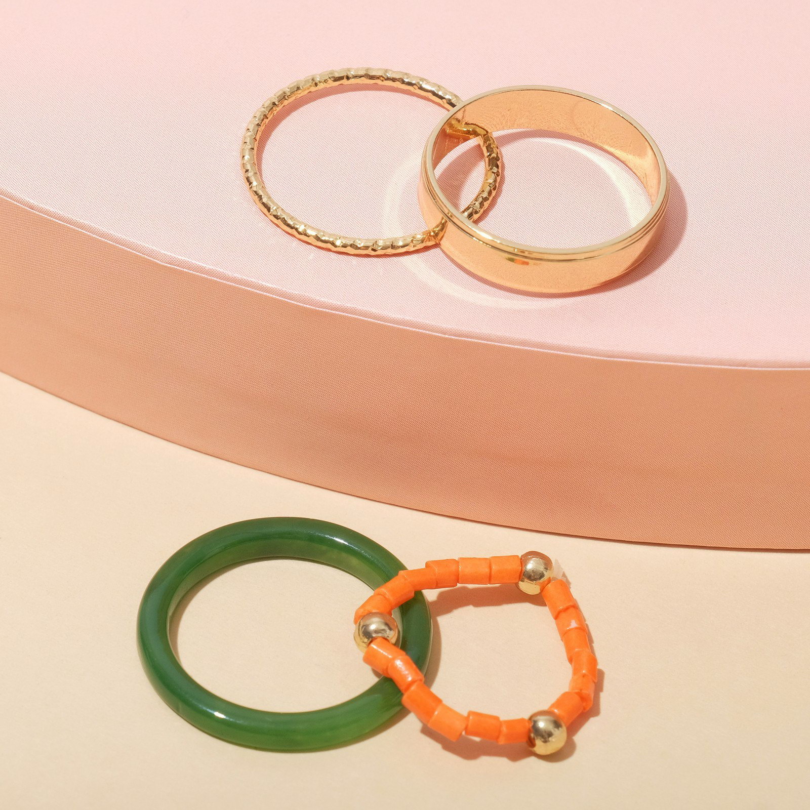 Кольцо набор 4 штуки "Джипси" 1 на фалангу, бисер, цвет зелёно-оранжевый в золоте, размер 15-16, 2.3x2.3x0.3 см., Queen fair, Китай