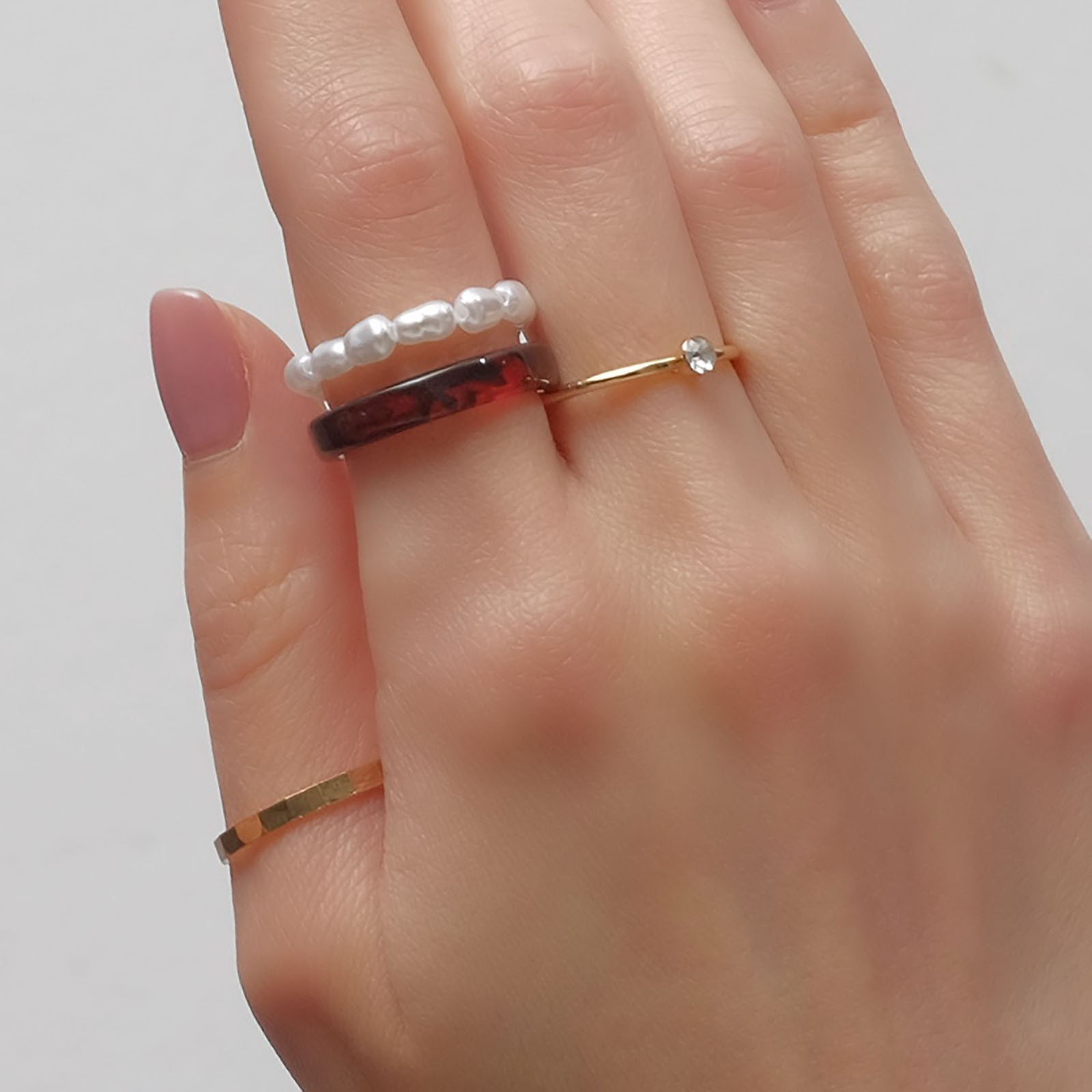 Кольцо набор 4 штуки "Джипси", эстетика, цвет красно-белый в золоте, размер 16-17, 2.3x2.3x0.3 см., Queen fair, Китай