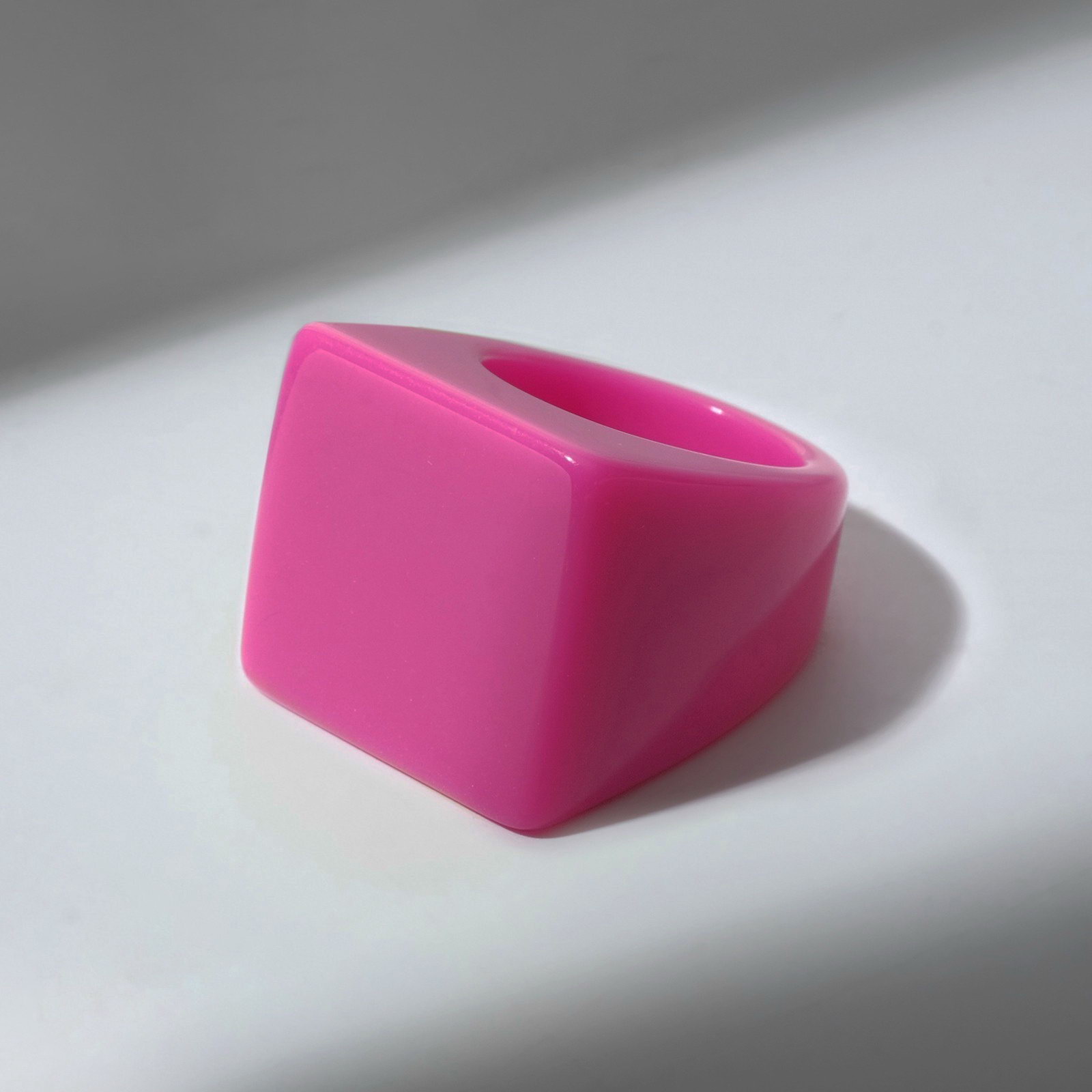 Кольцо пластик "Квадрат", цвет малиновый, 17 размер, 1.7x1.7x1.1 см., QF, Китай