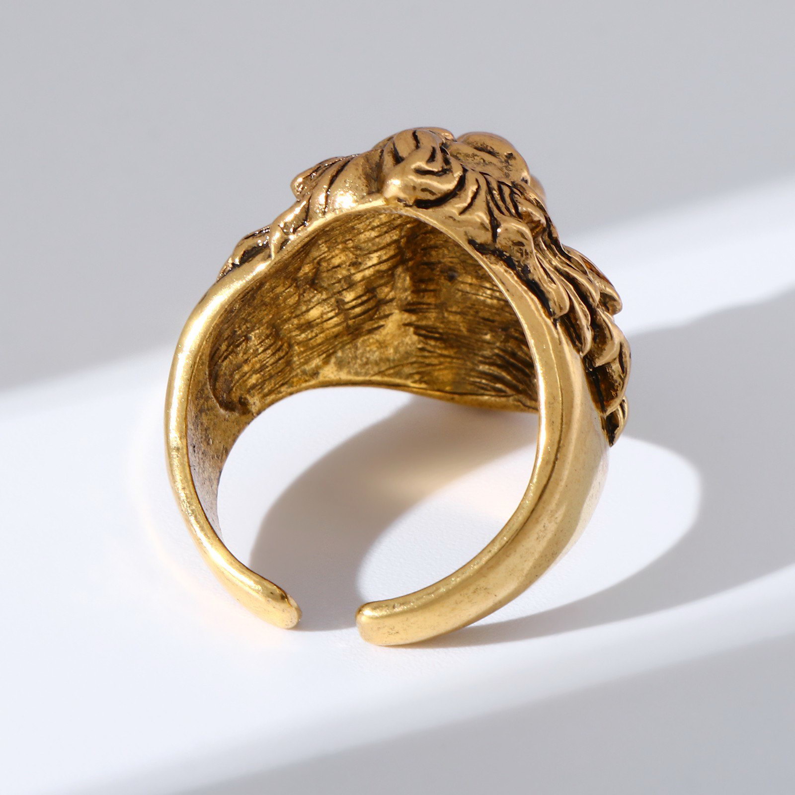 Кольцо "Перстень" лев, цвет чернёное золото, безразмерное, 2.5x1.8x1 см., QF, Китай