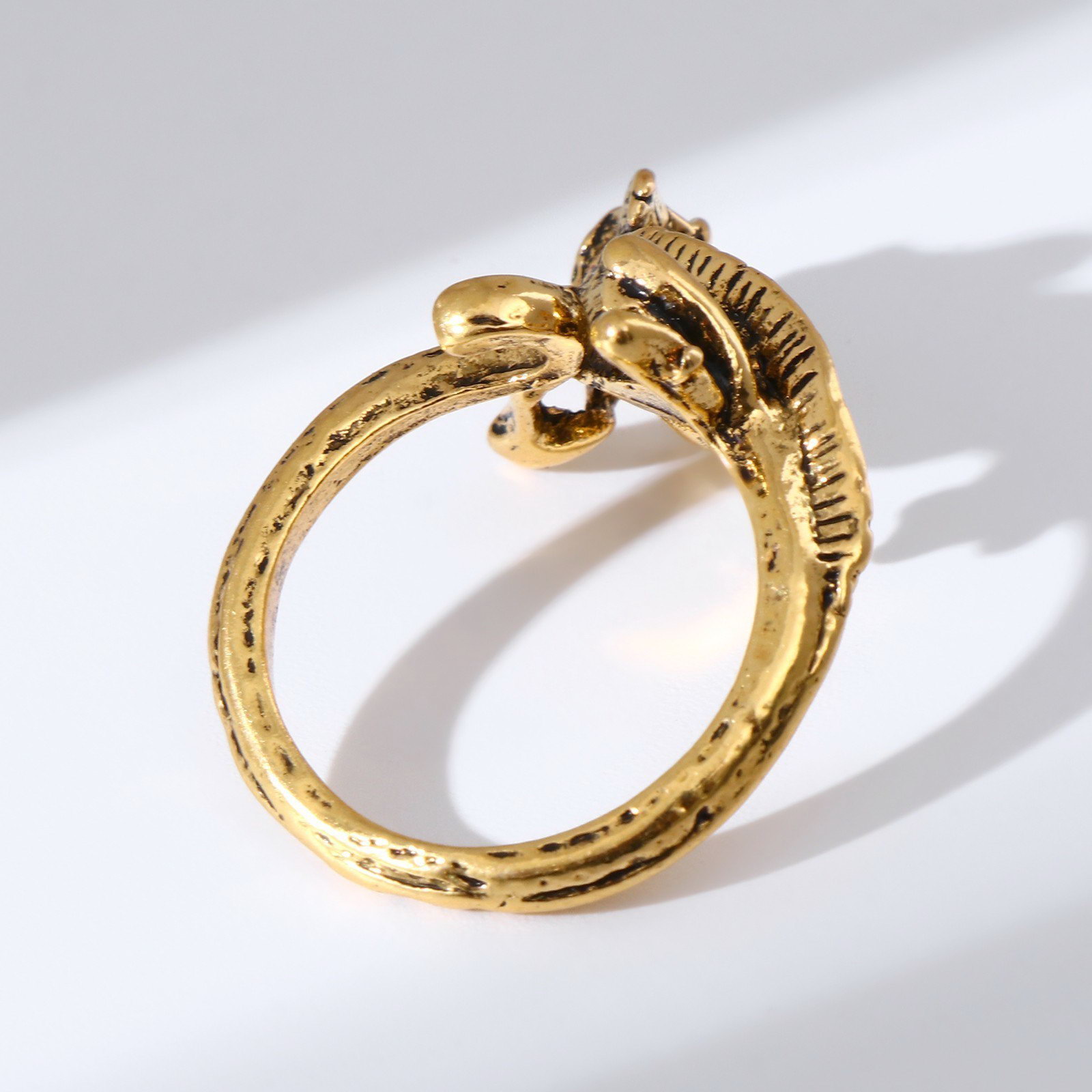 Кольцо "Перстень" хамелеон, цвет чернёное золото, безразмерное, 2.4x1.8x0.8 см., QF, Китай