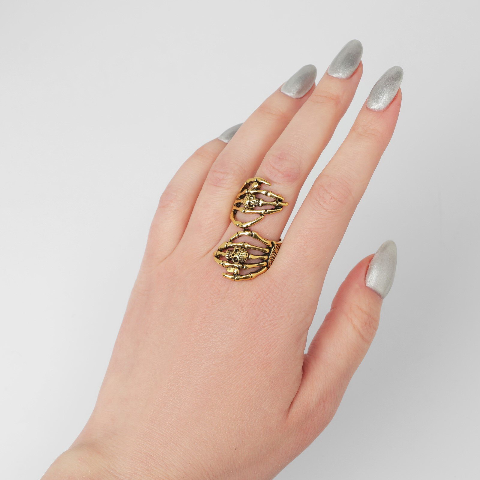 Кольцо "Перстень" череп на костях, цвет чернёное золото, безразмерное, 4x1.8x0.3 см., QF, Китай