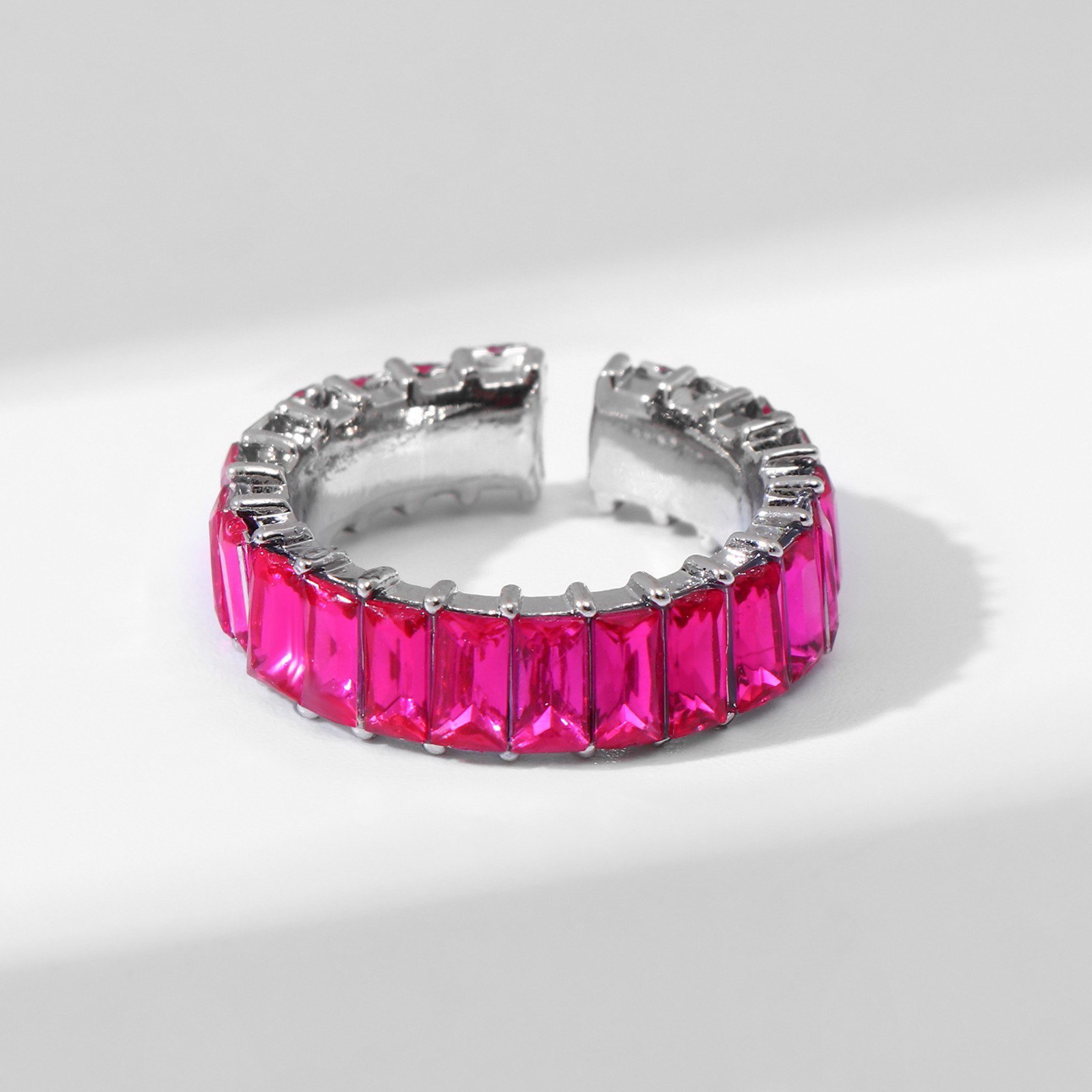 Кольцо "Тренд" параллель, цвет ярко-розовый в серебре, безразмерное, 0.5x1.7x0.3 см., QF, Китай