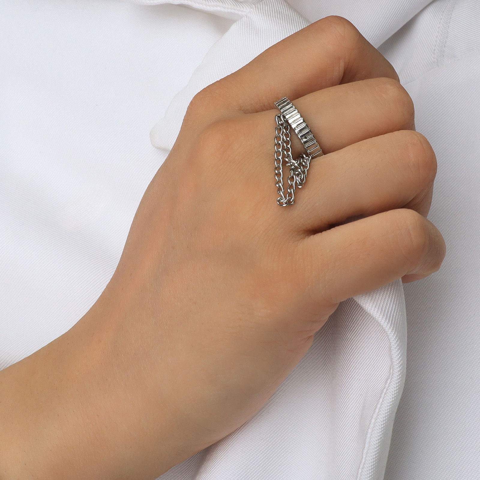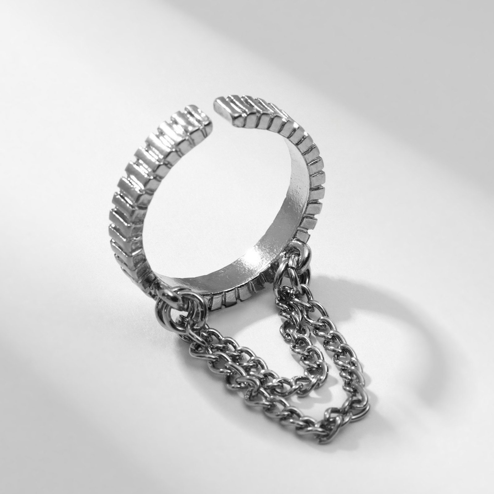 Кольцо "Тренд" цепочки, цвет серебро, безразмерное, 2.5x1.8x0.3 см., QF, Китай
