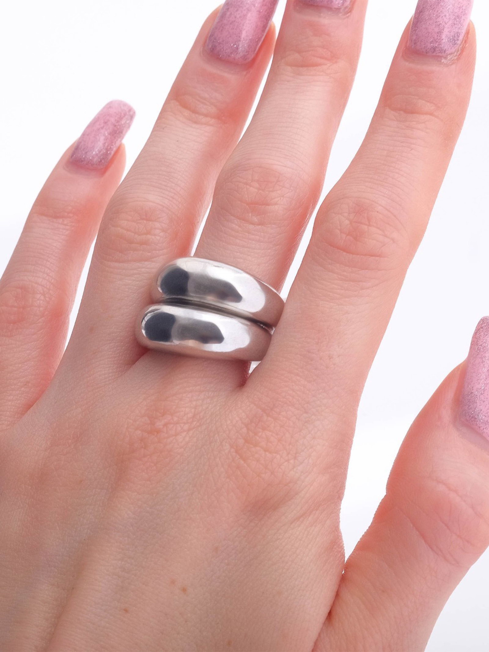 Кольцо "Минимал" двойное, цвет серебро, безразмерное, 1.2x2.1x0.7 см., QF, Китай