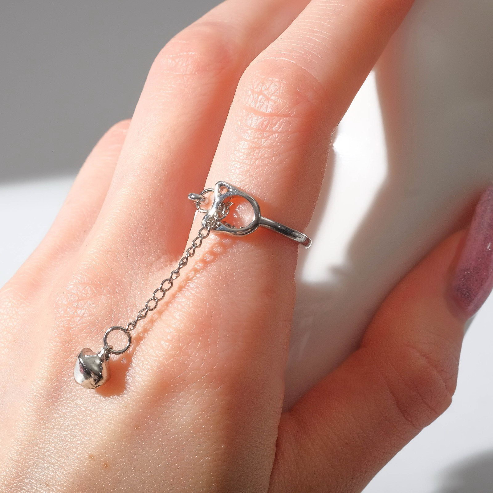 Кольцо "Цепь" кошечка, цвет серебро, безразмерное, 1.5x3.2x0.8 см., QF, Китай