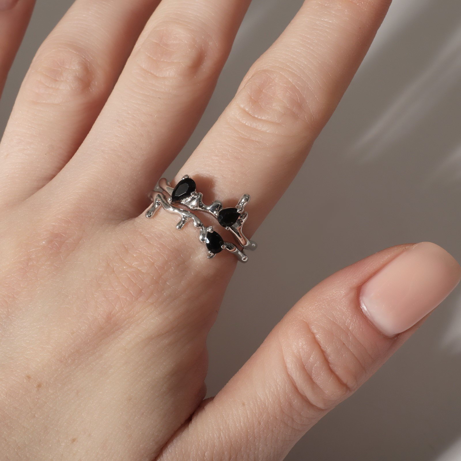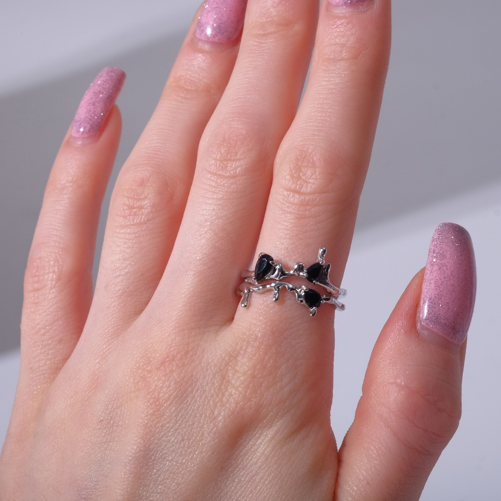Тематика: Кристаллы, Цветы и растения Размер упаковки: 6 x 0.5 x 8 см. Вид: Кольцо Длина, см: 2 Для кого: Для женщины tnved: 7117900000 Набор: Нет Цвет фурнитуры: Серебряный Размер: Безразмерное см Вставка/Подвеска: Без вставок Цвет: Чёрный Материал основы: Металл Стильное колечко способно полностью преобразить Ваш образ, сделав его особенным и неповторимым. | ||