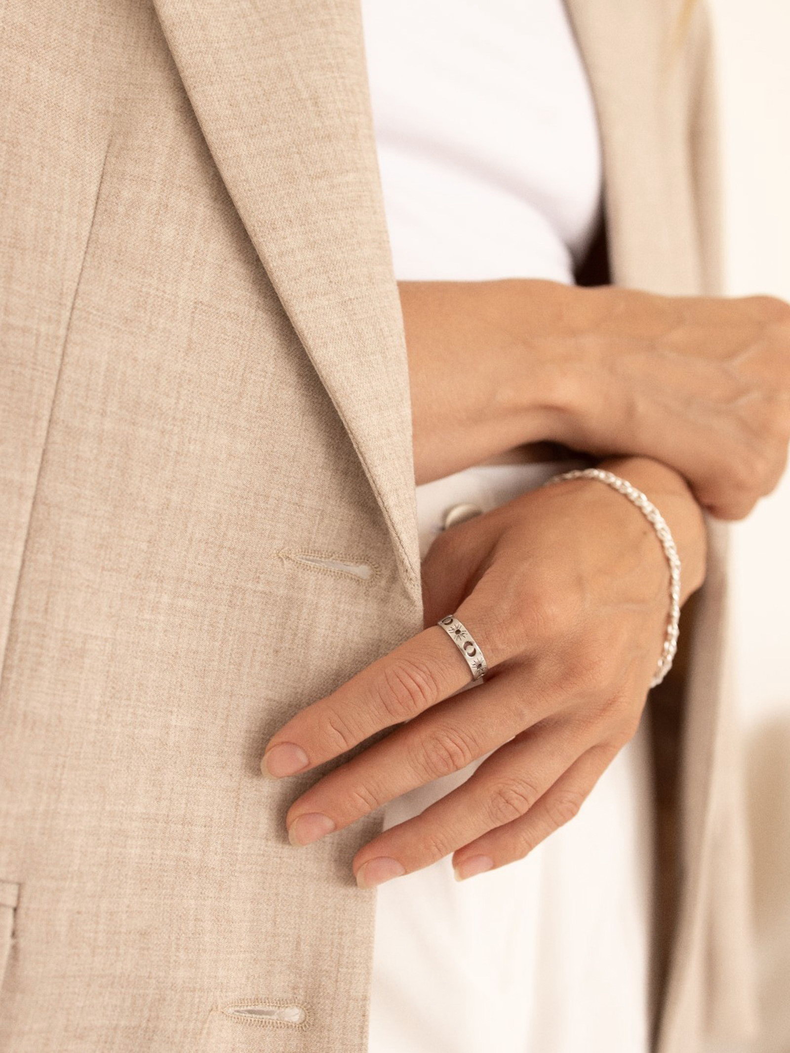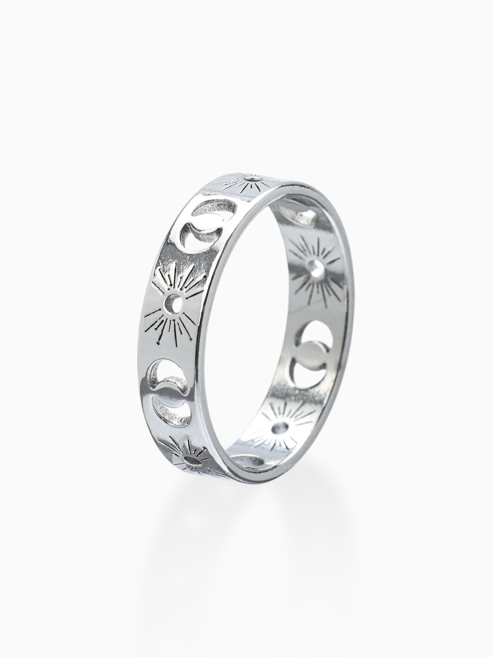 Кольцо "Солнце и полумесяцы", цвет серебро 18 размер, 1.8x1.8x0.4 см., QF, Китай