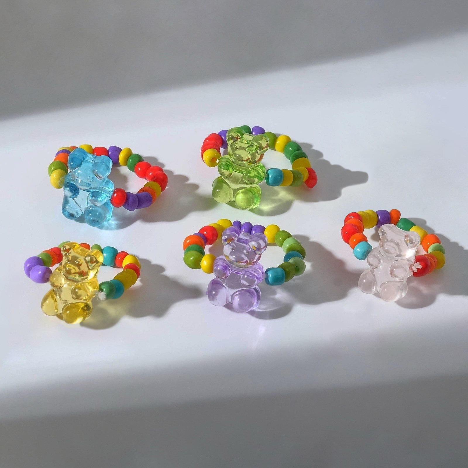 Кольцо из бисера "Мармеладный мишка", МИКС, безразмерное, 1x1.7x1.7 см., QF, Китай