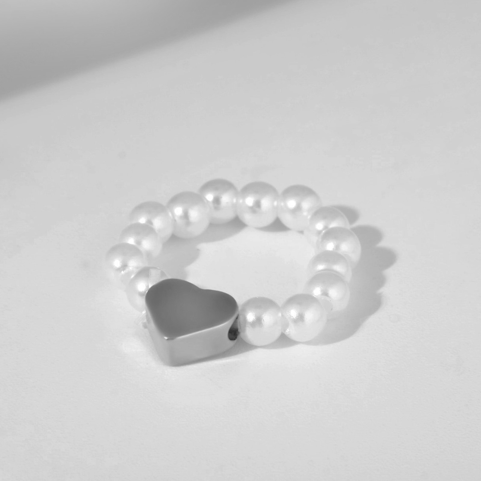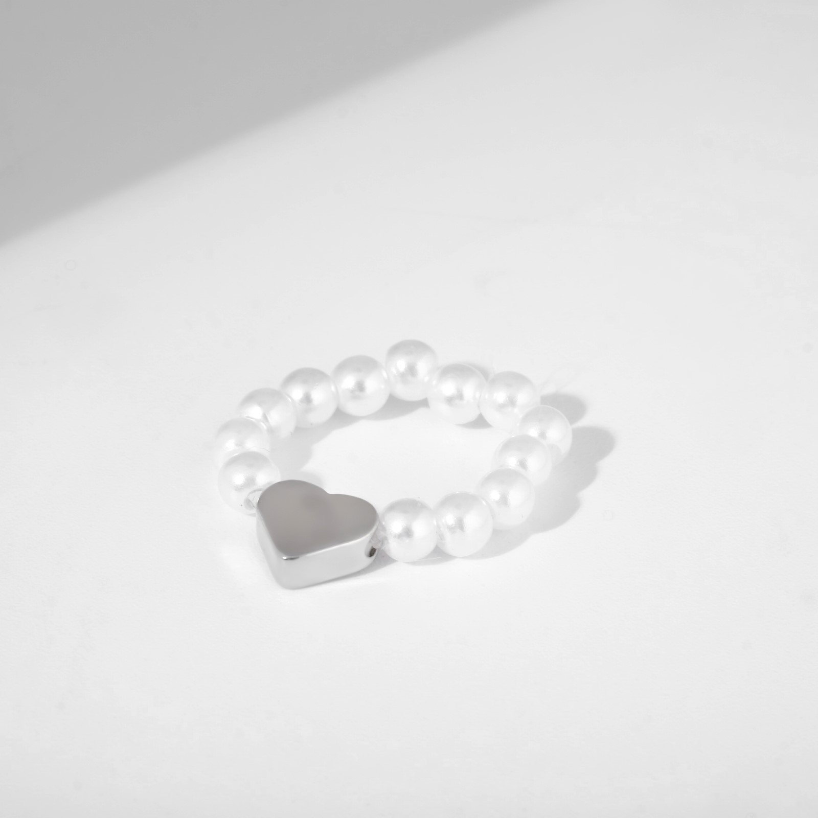 Кольцо бисерное "Сердечко", белое, 0.6x1.5x0.4 см., QF, Китай