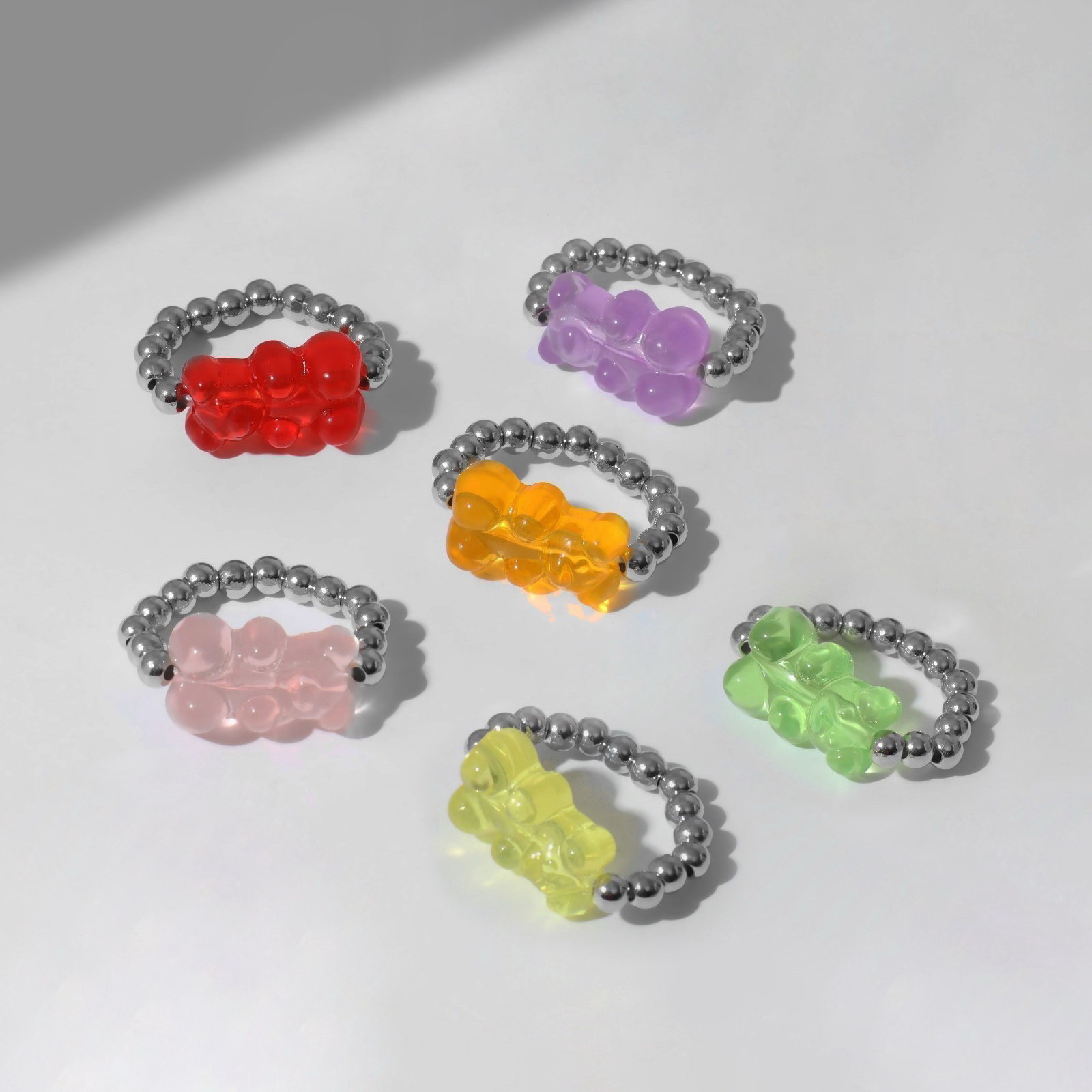 Кольцо бисерное "Мармеладный мишка", безразмерное, цвет МИКС, 1x1.7x1.7 см., QF, Китай