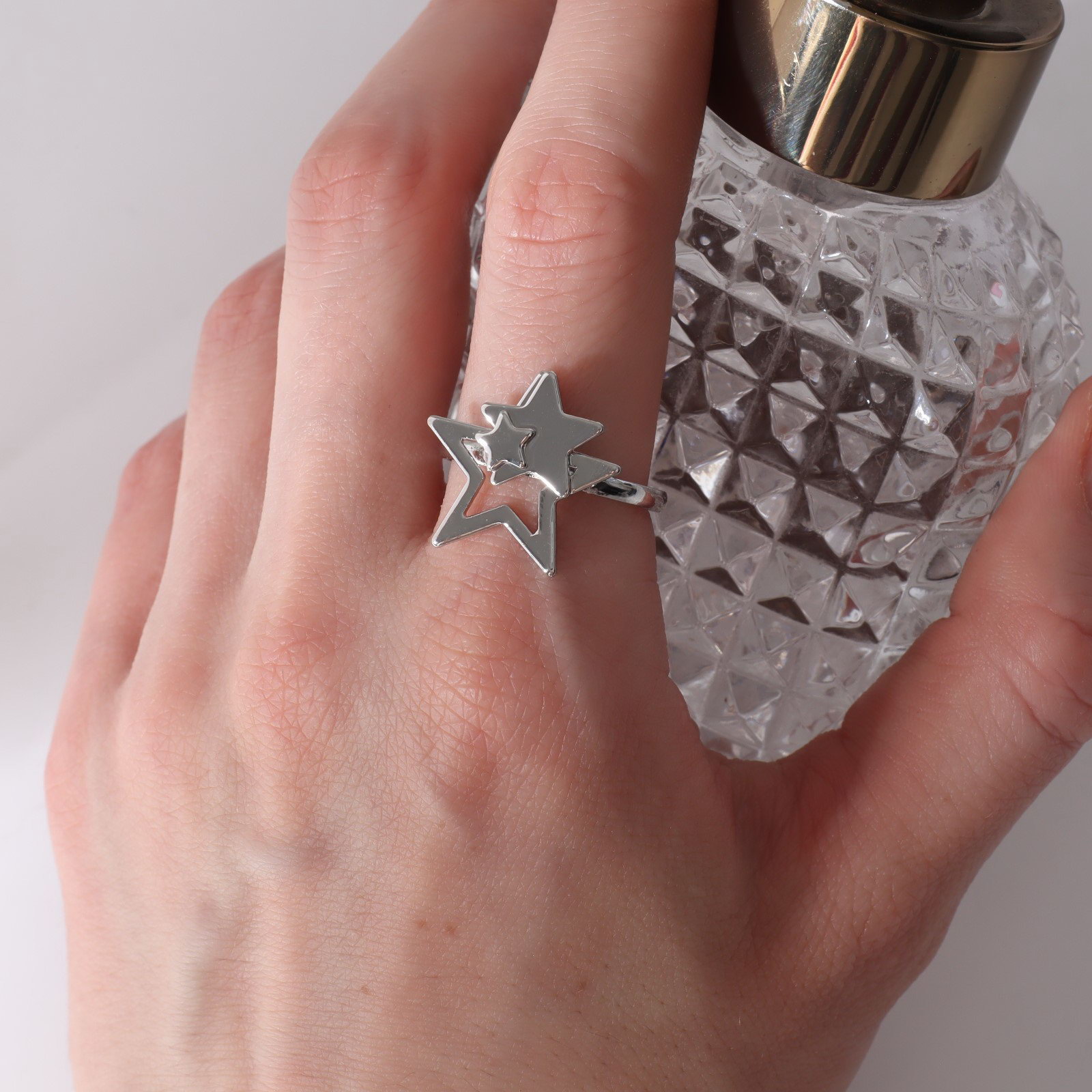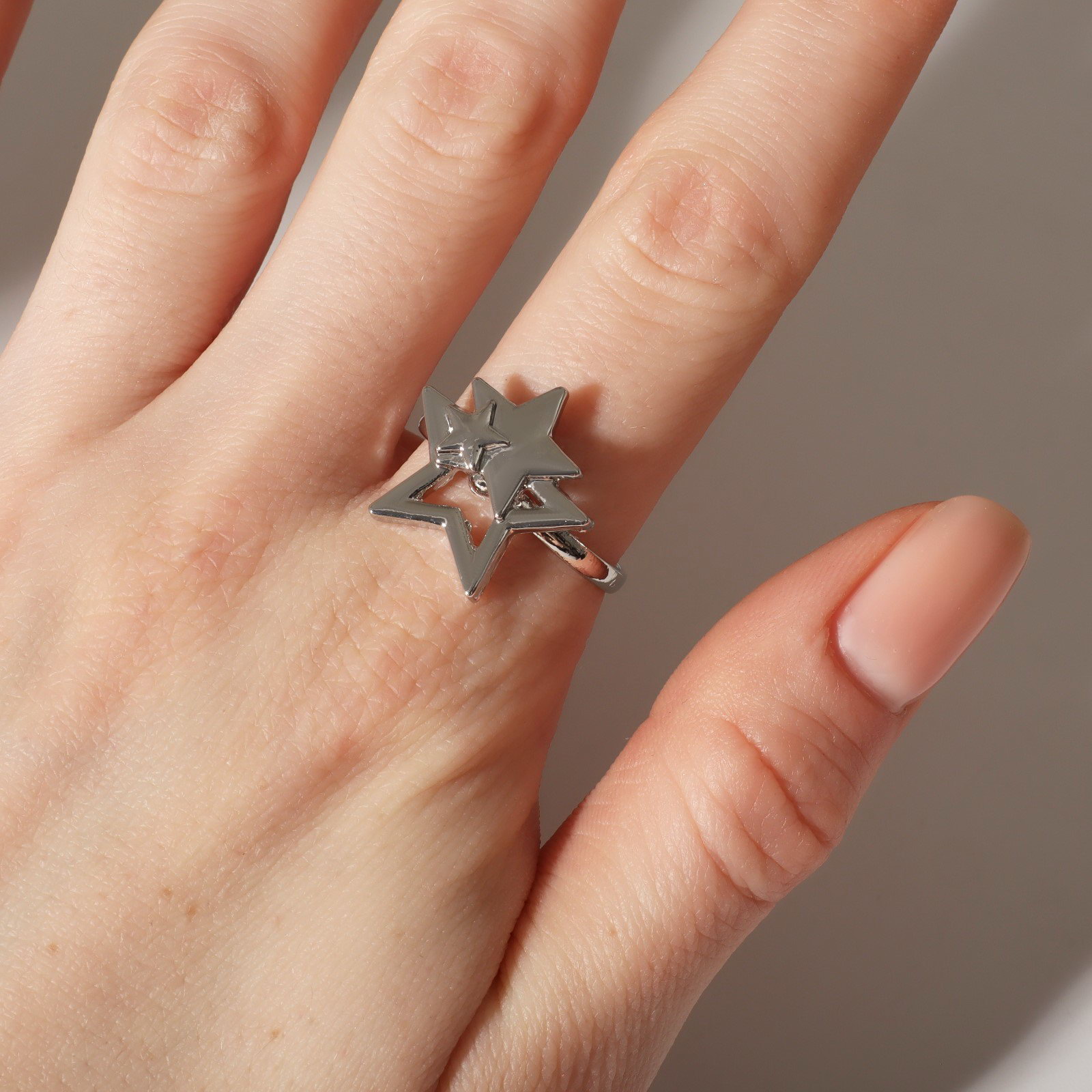 Кольцо "Звёзды" трио, цвет серебро, безразмерное, 1.8x1.8x1.7 см., QF, Китай