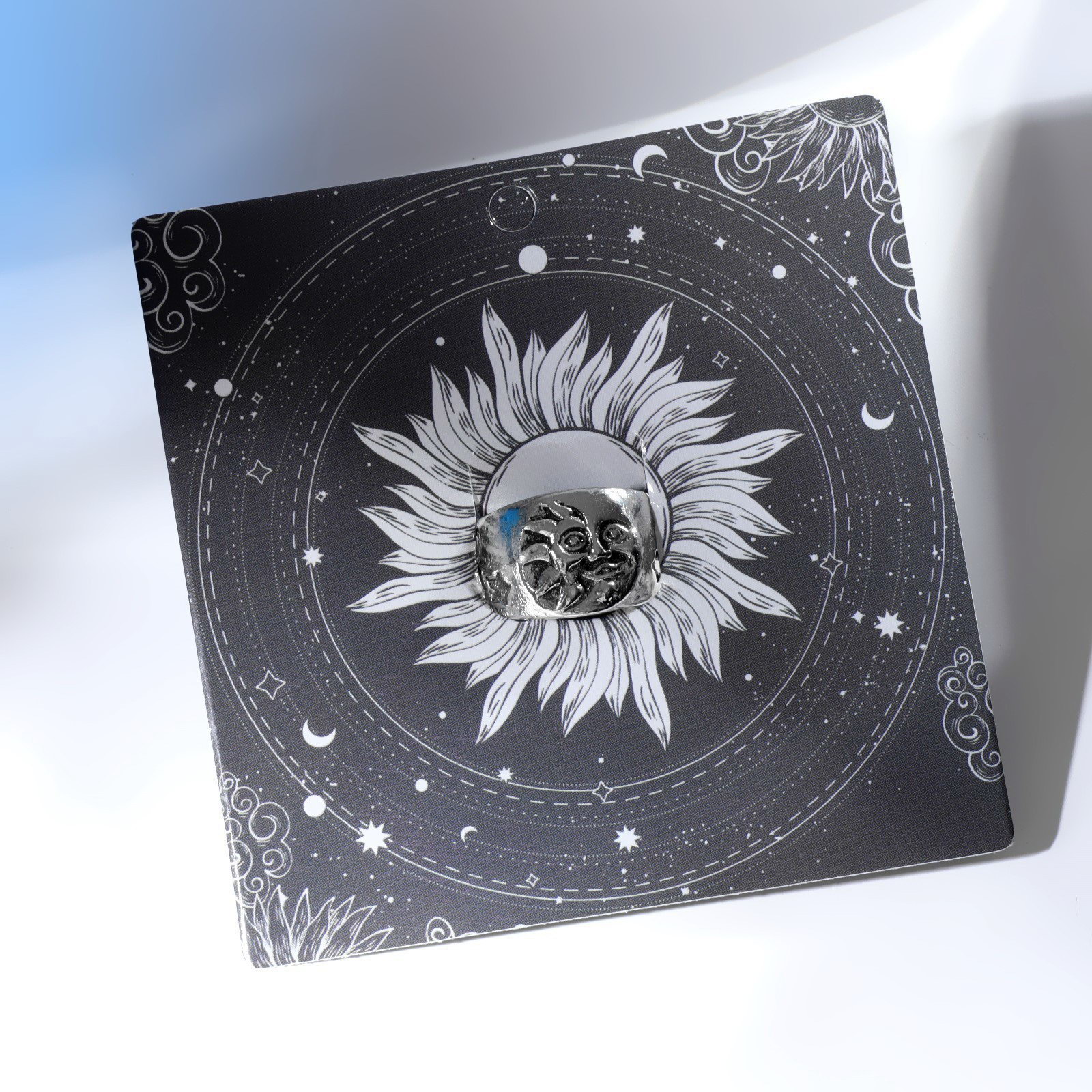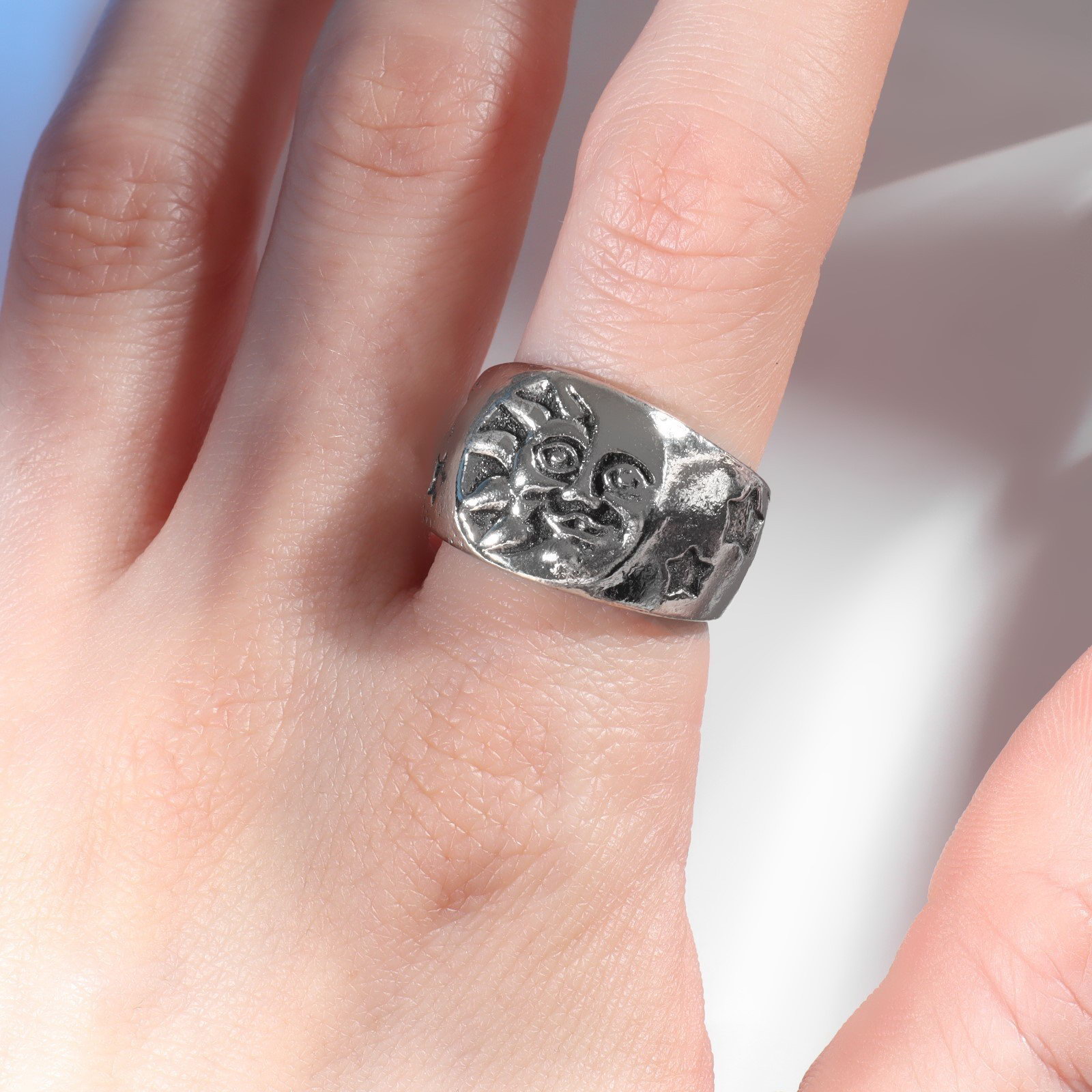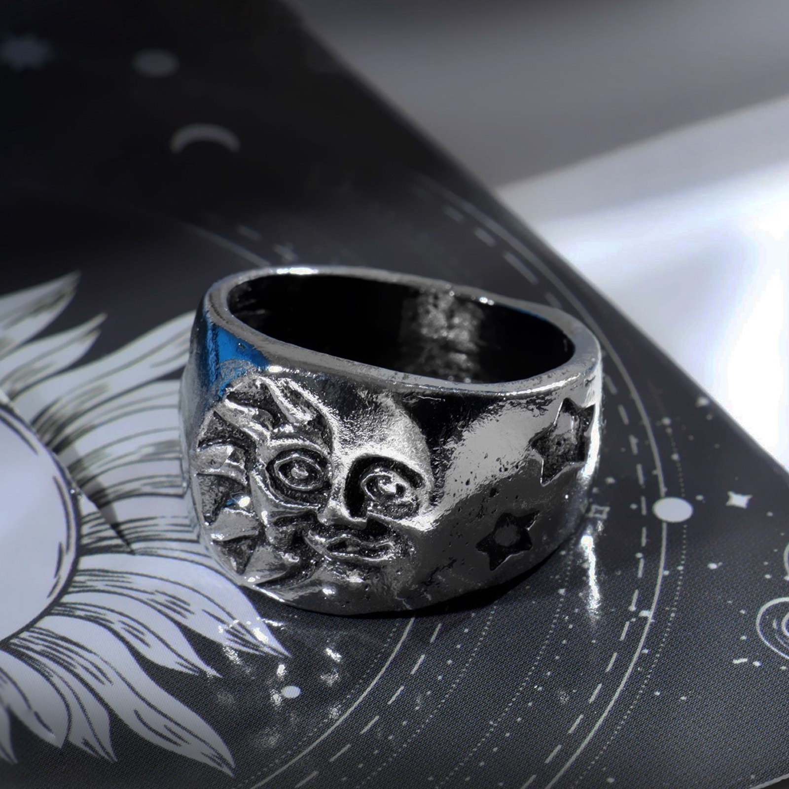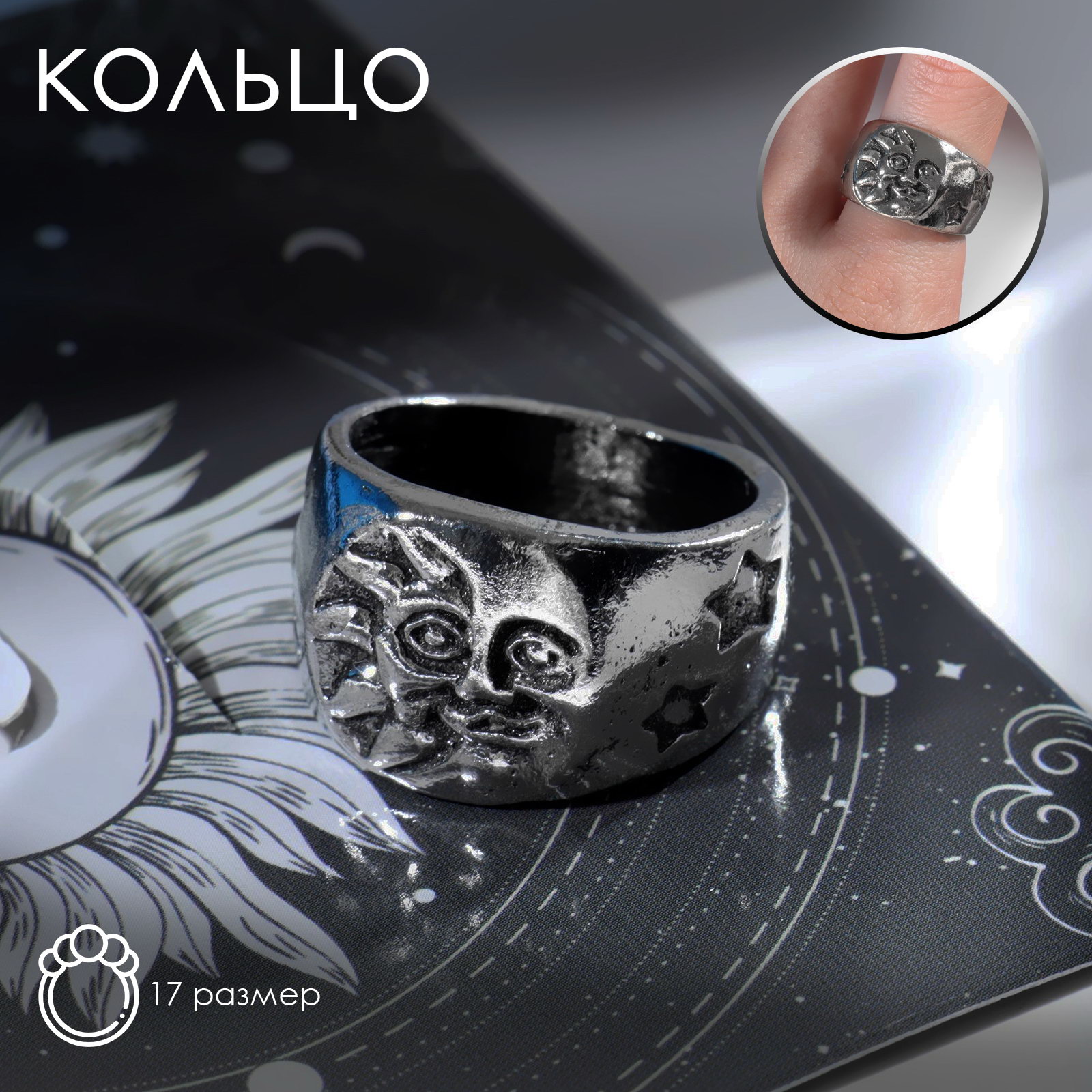 Кольцо "Солнце и Луна" со звёздами, цвет чернёное серебро,17 размер, 1.7x1.7x1.2 см., Queen fair, Китай