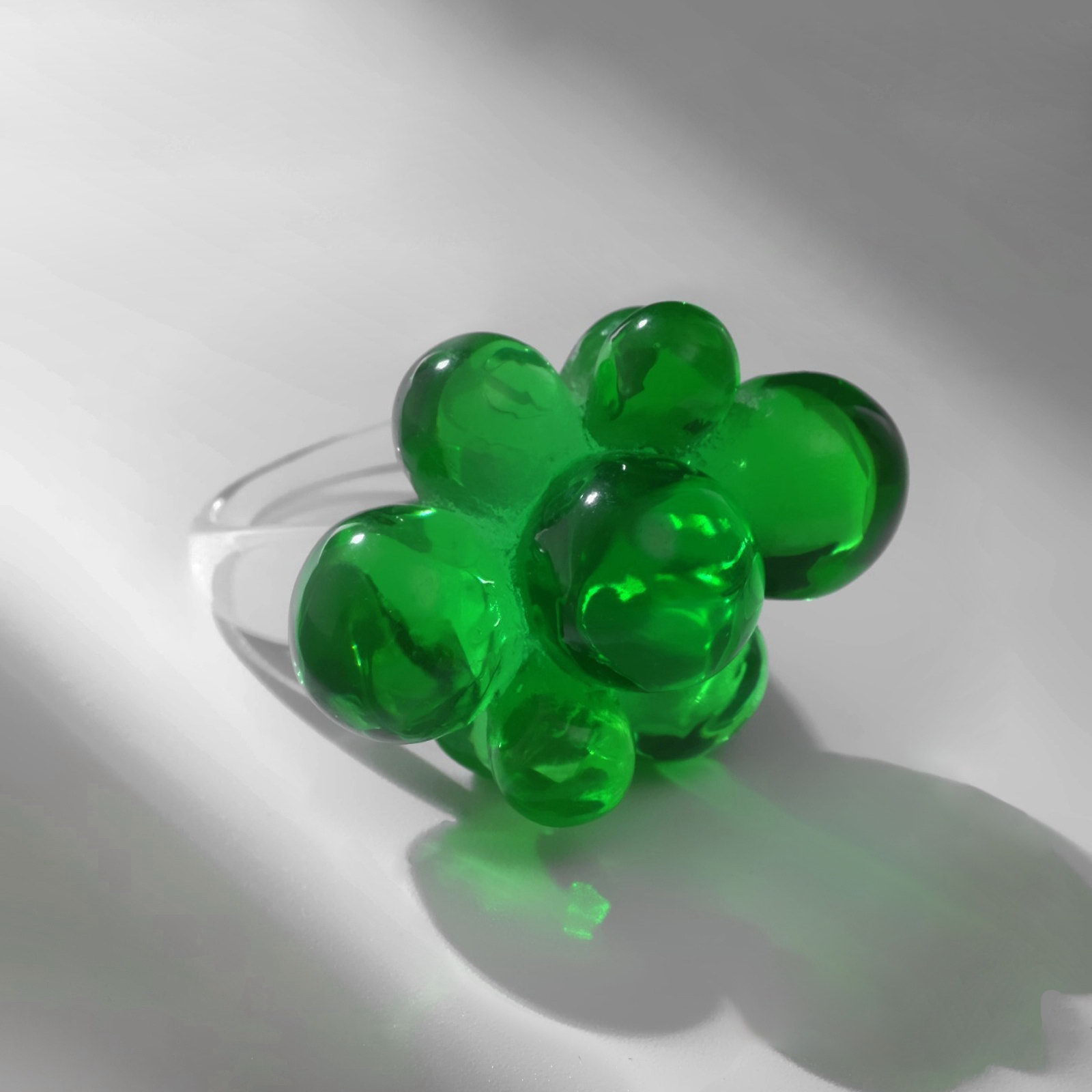 Кольцо пластиковое "Молекулы", зелёное, 17 размер, 1.7x1.7x1 см., QF, Китай