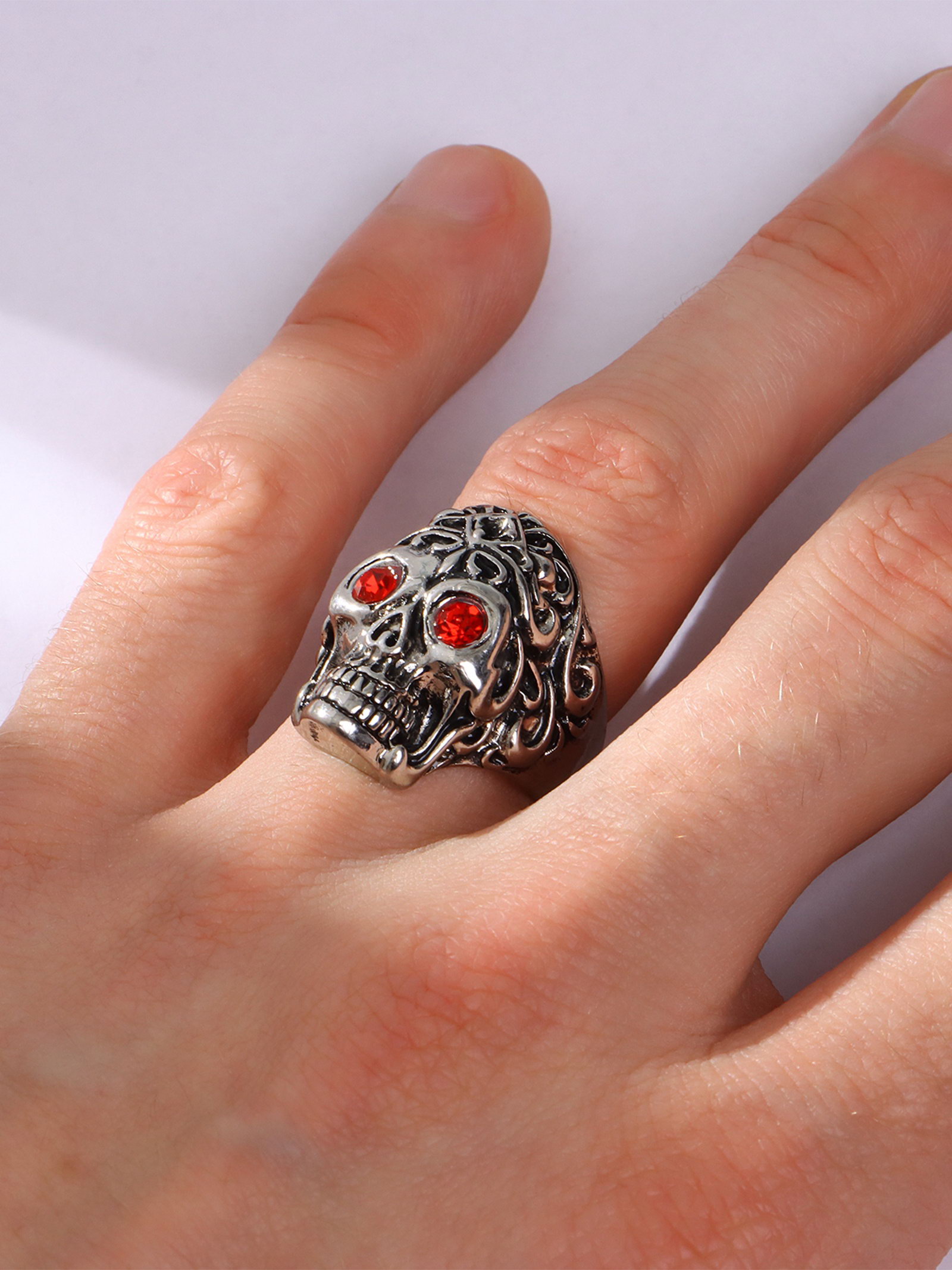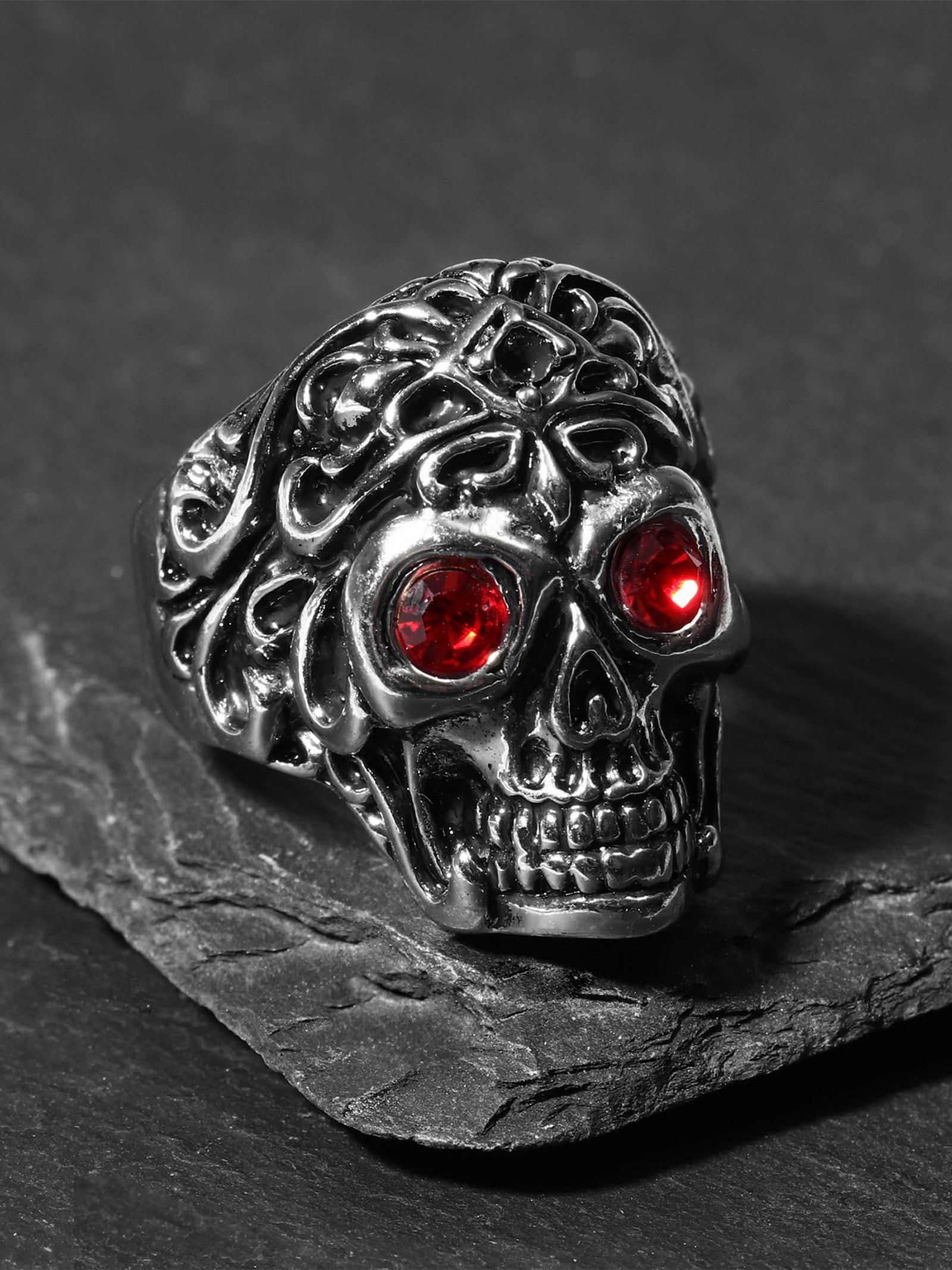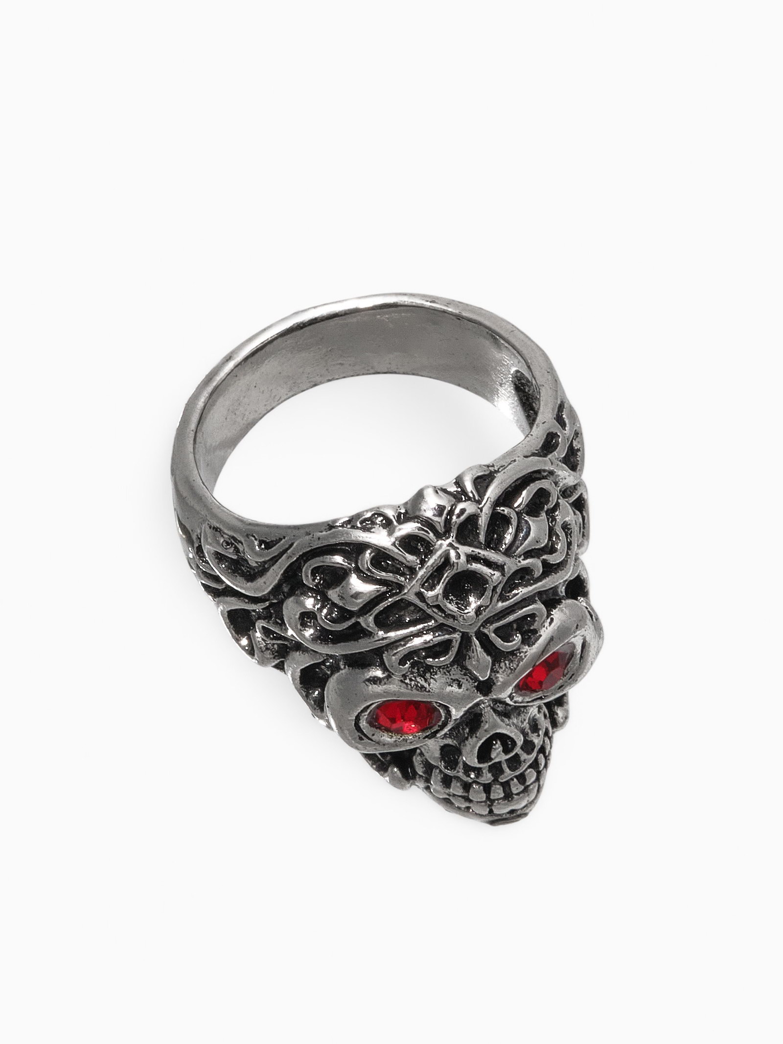 Кольцо "Перстень" череп с красными глазами, цвет красный в чернёном серебре, 20 размер, 2x2x0.5 см., QF, Китай
