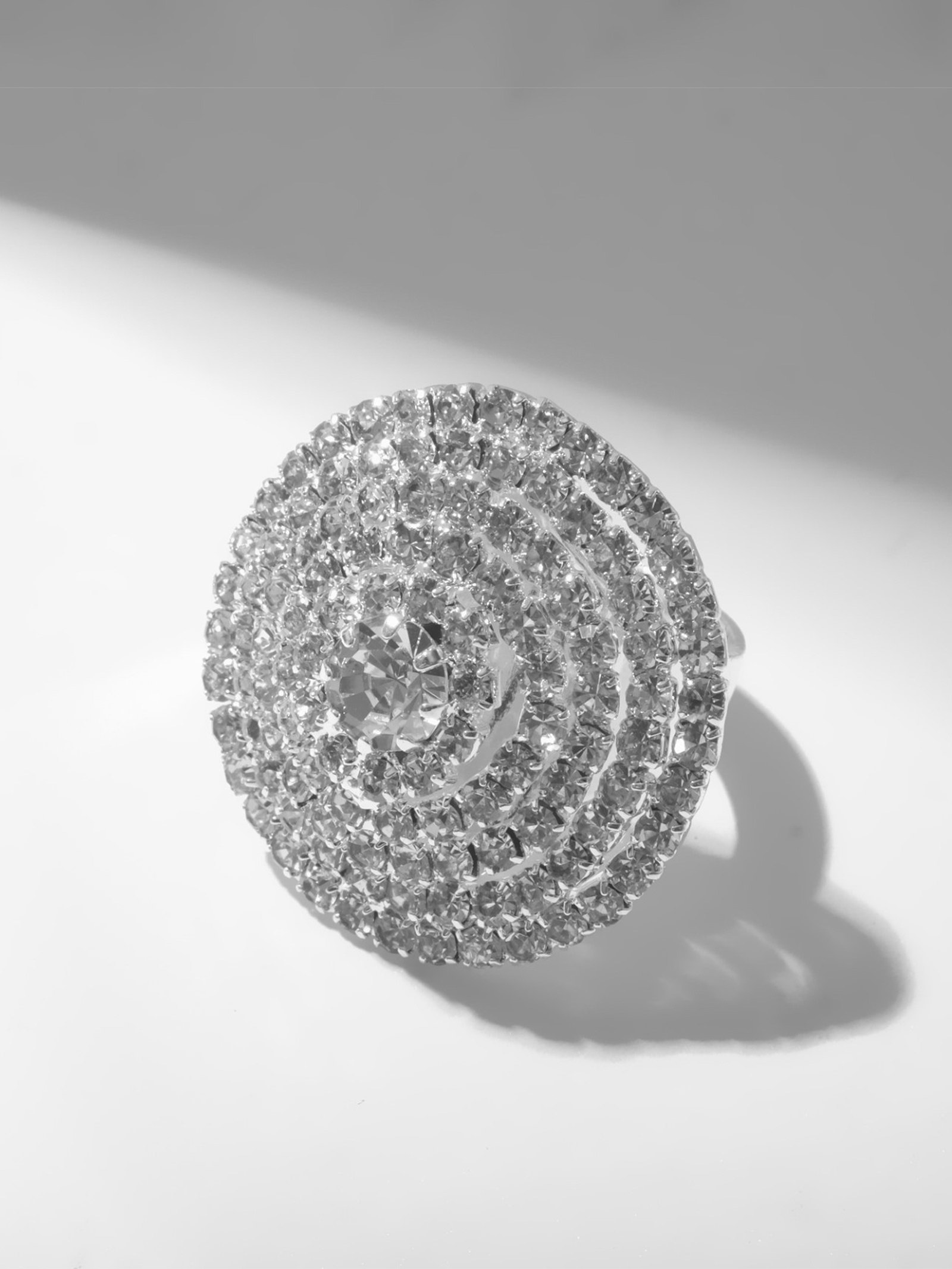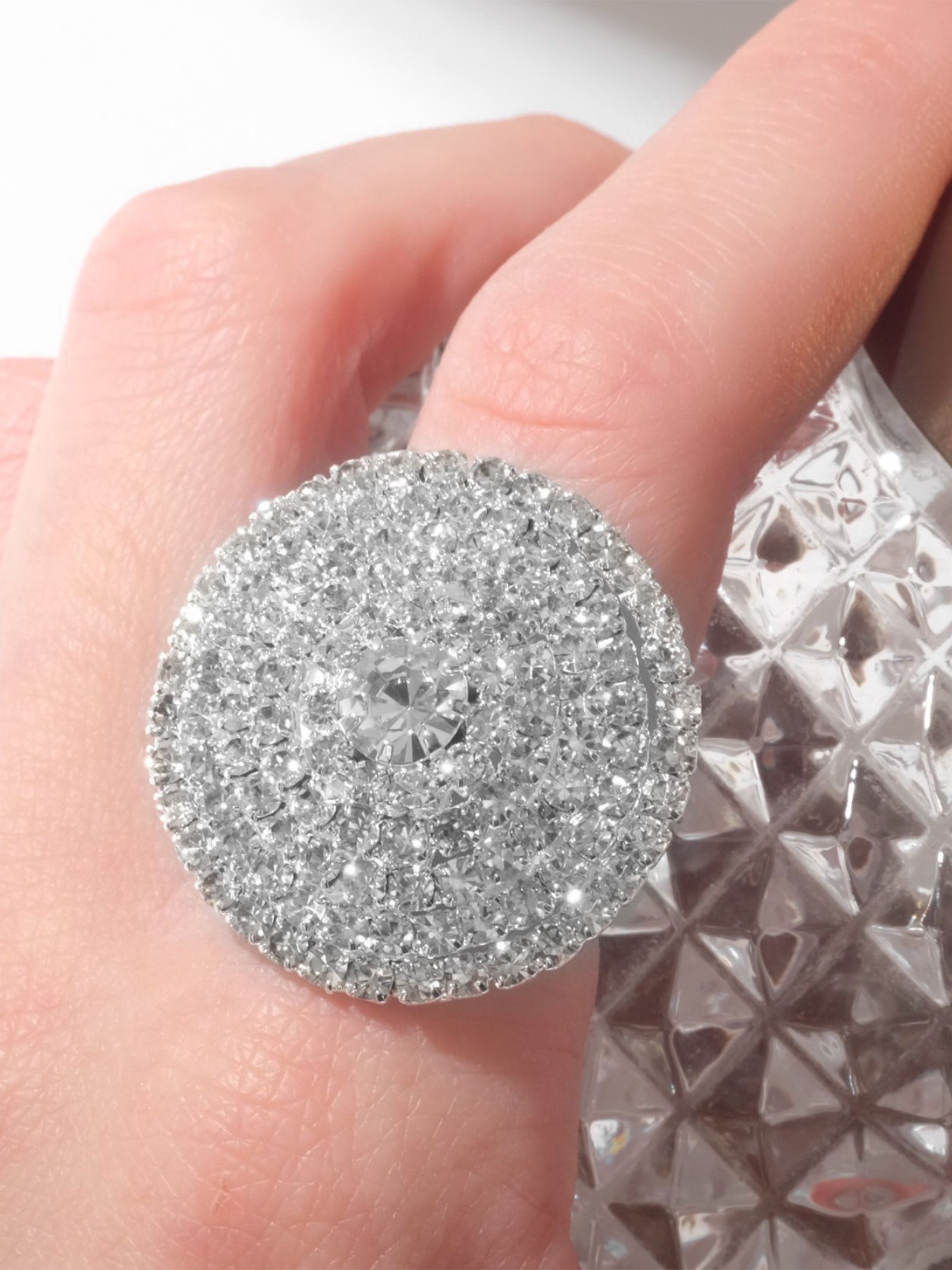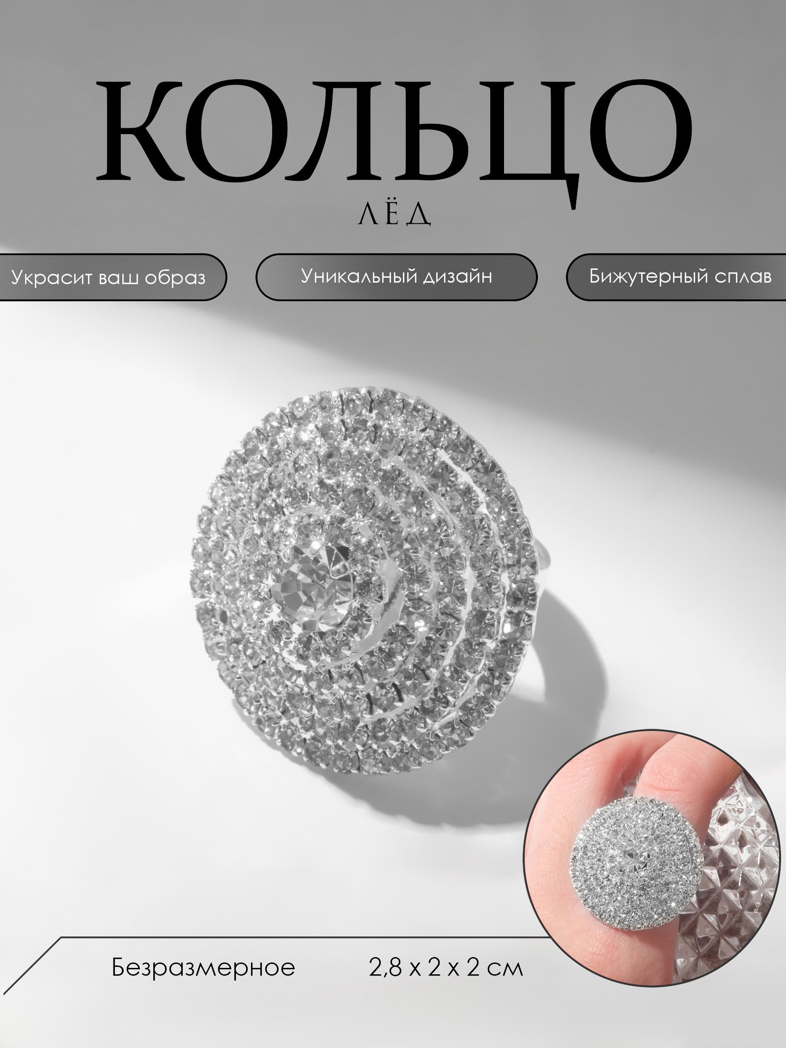 Кольцо "Лёд" круг, цвет белый в серебре, безразмерное, 2x2.8x2 см., Queen fair, Китай
