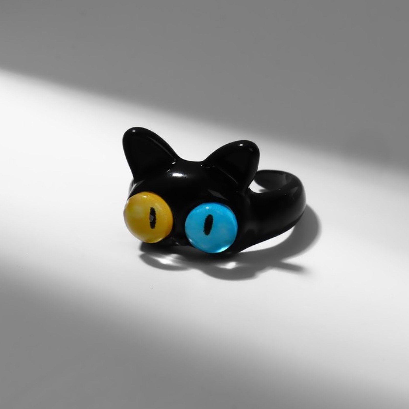 Кольцо "Монстрик" кот, цвет чёрный, безразмерное, 1.8x1.8x1.5 см., Queen fair, Китай