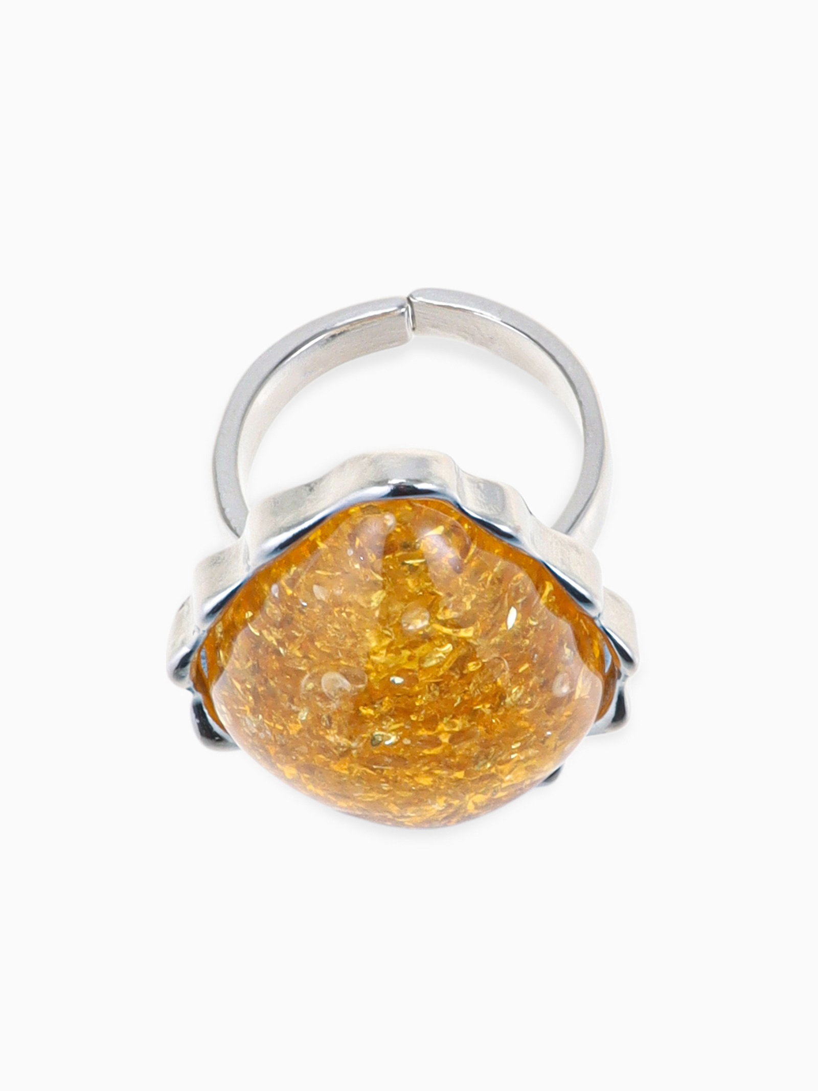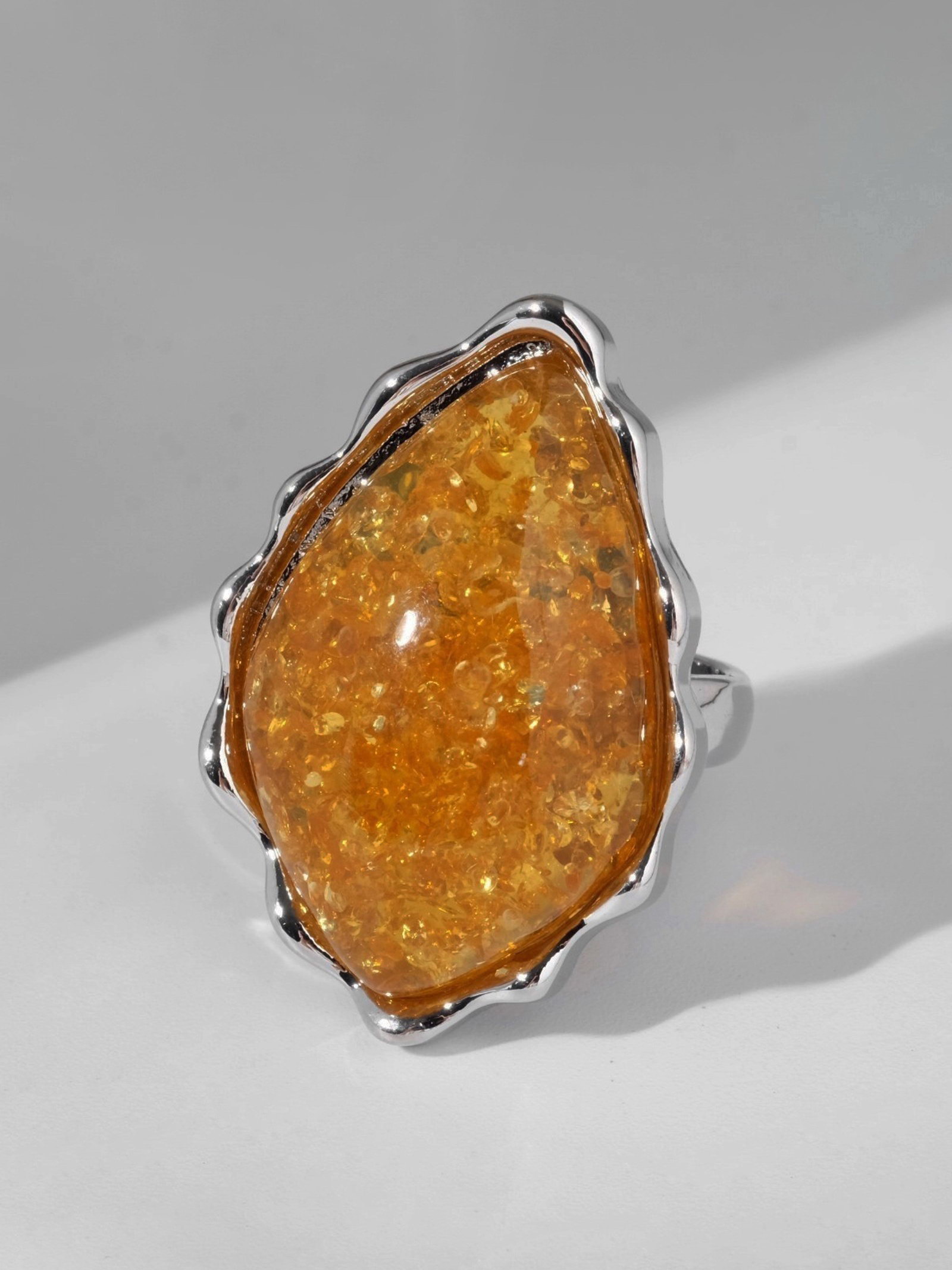 Кольцо "Изыск" ромб янтарный, цвет коричневый в серебре, безразмерное, 3x2.2x3.5 см., QF, Китай