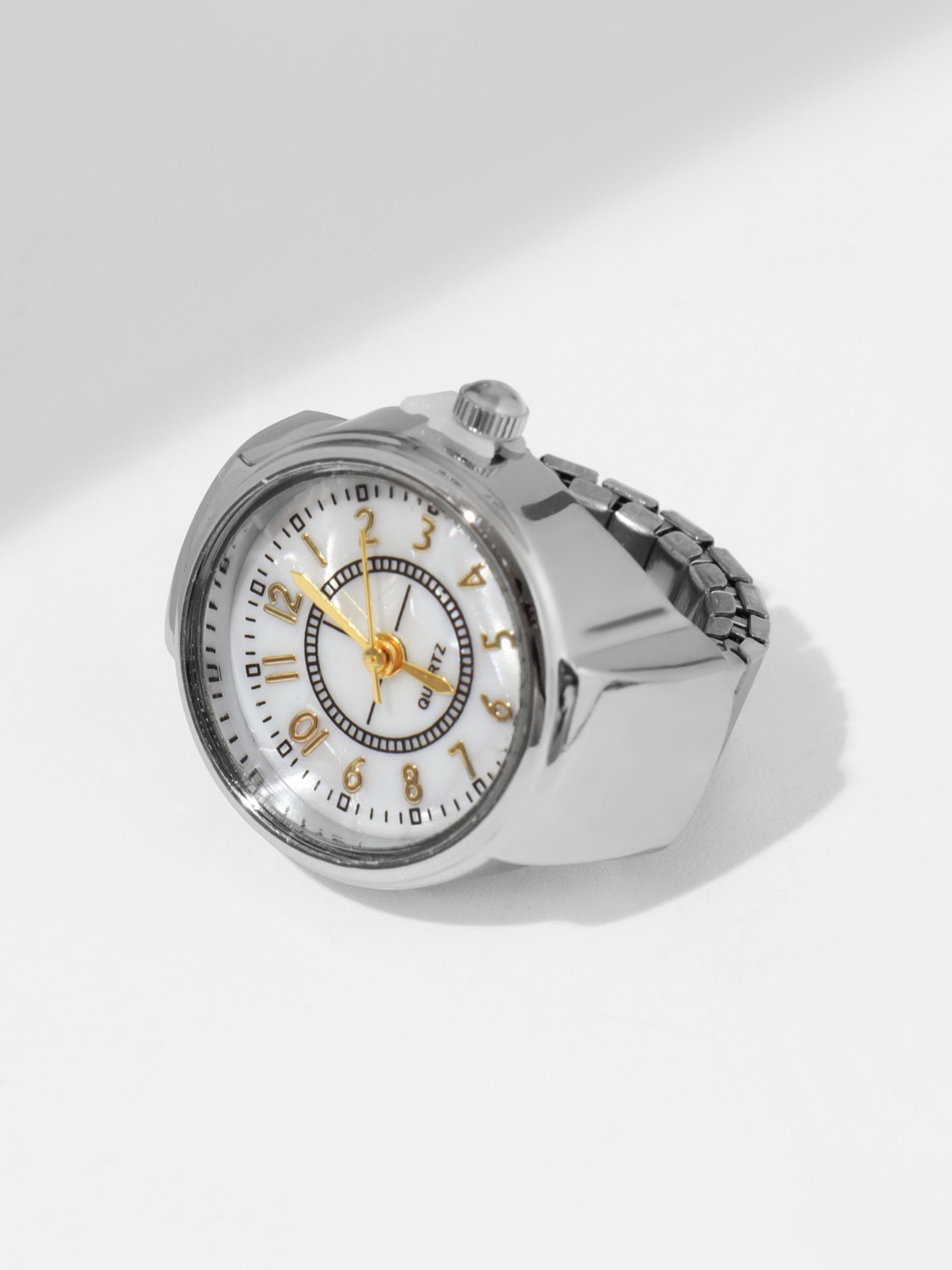 Кольцо "Время" часы круг, цвет серебряно-золотой, 1.9x1.7x0.8 см., QF, Китай