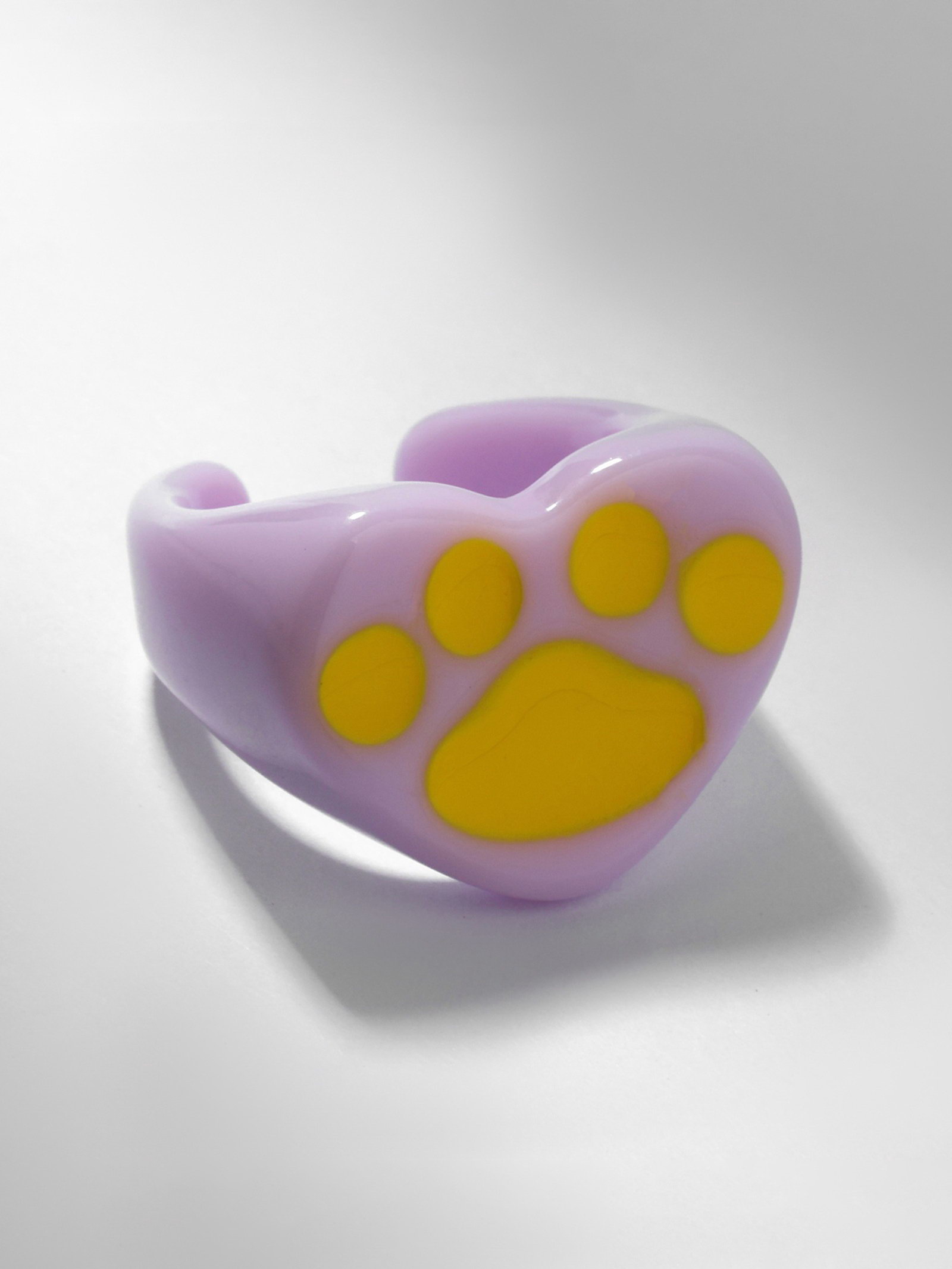 Кольцо пластиковое "Лапка", сиренево-жёлтое, безразмерное, 2.5x2.3x1.5 см., QF, Китай